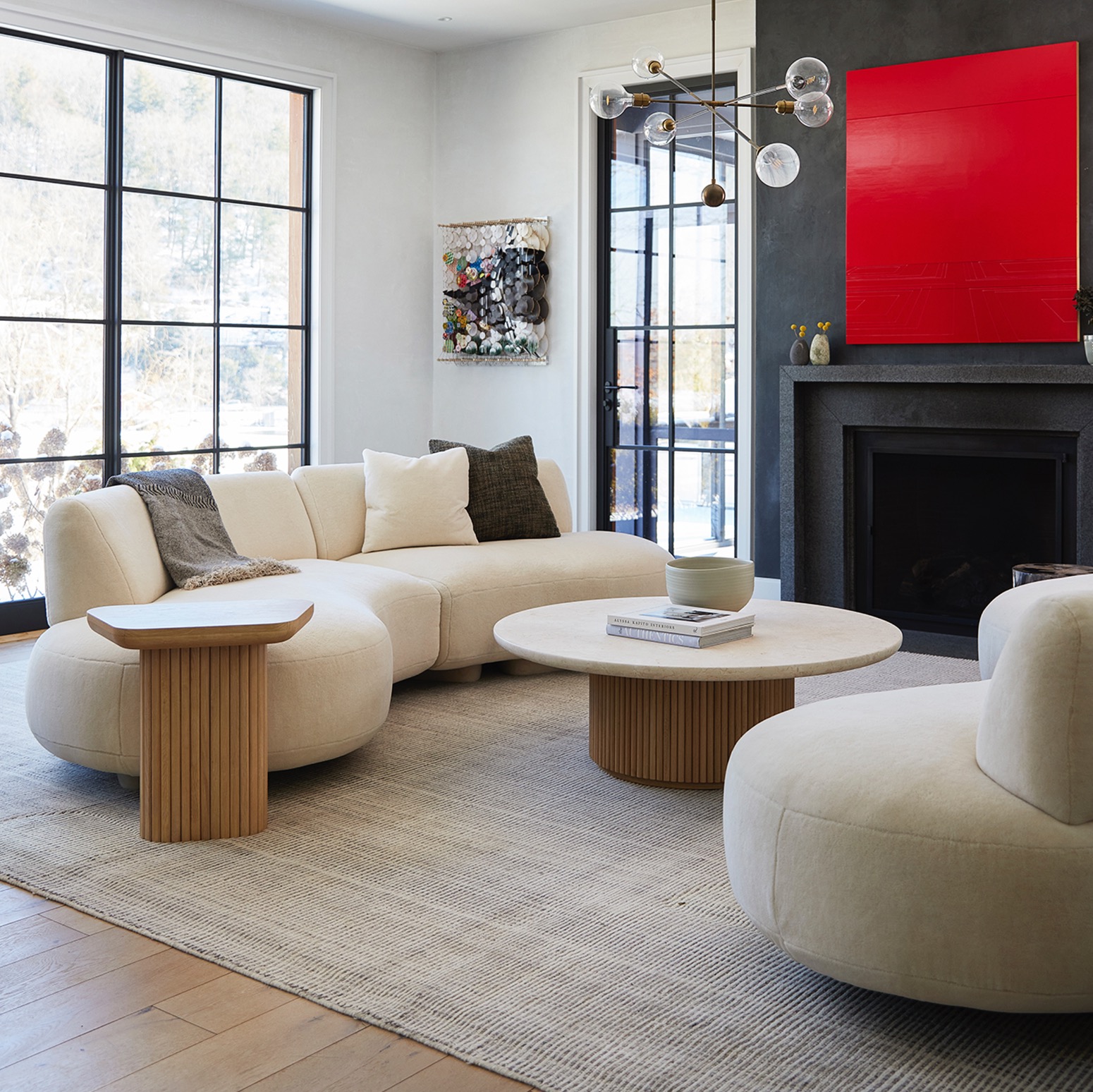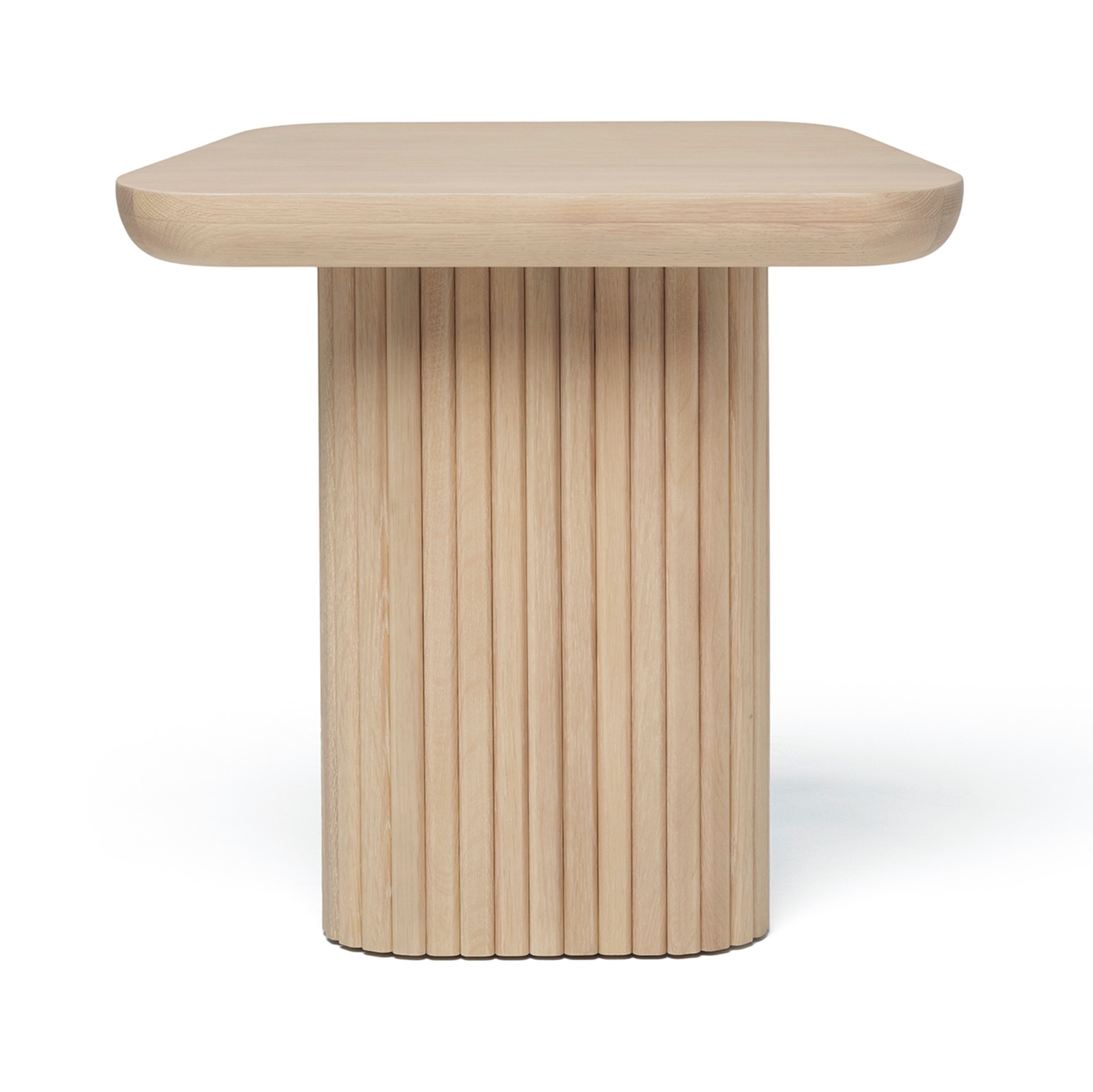 A precise fluted base plays off a surprising organic top to make the oak Carrabelle Side Table in saddle a truly handsome statement piece.