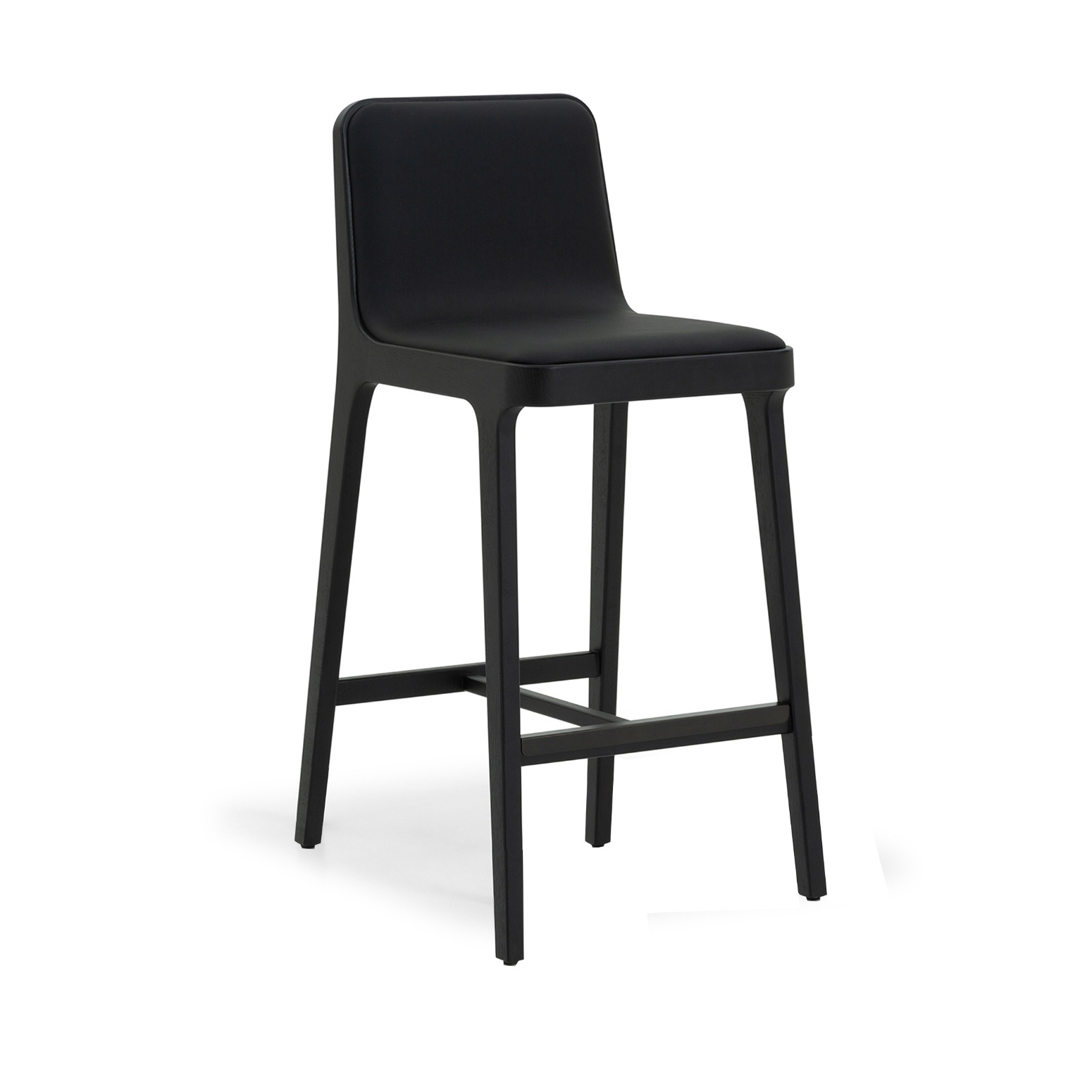 Crafted of oak in a matte black finish, upholstered in your preferred covering along with metal foot-rail in a dark bronze, the Florent Bar Stool is sleek and super chic, but still warm and inviting.