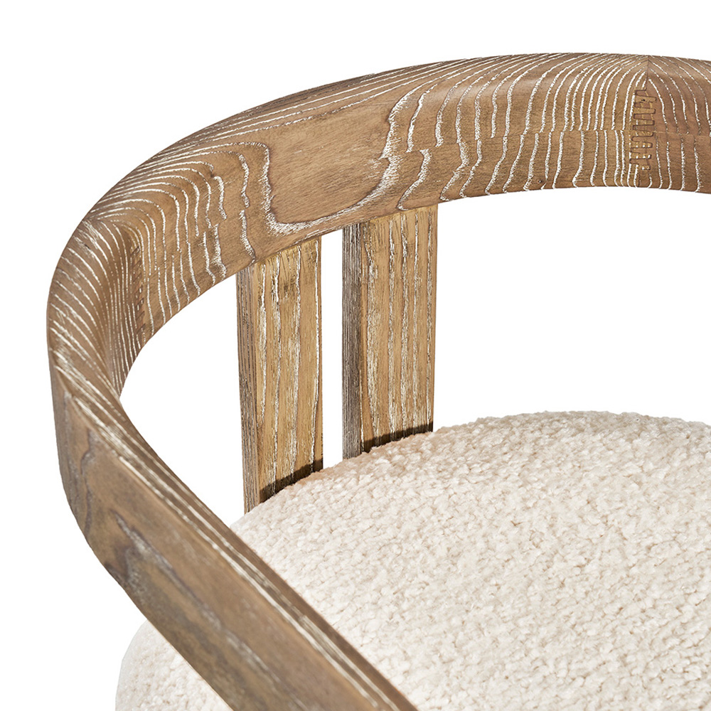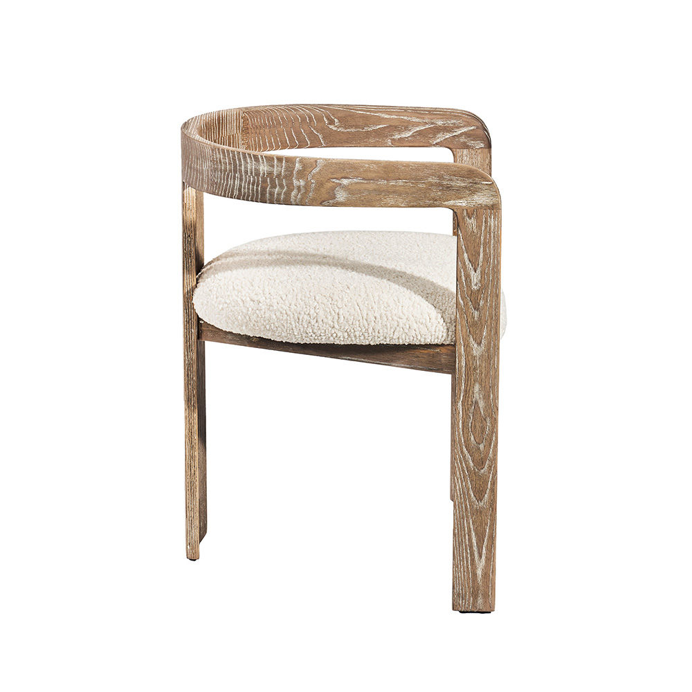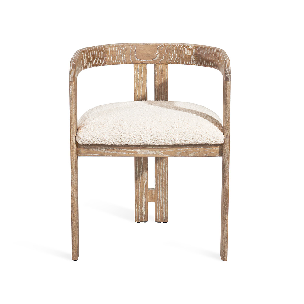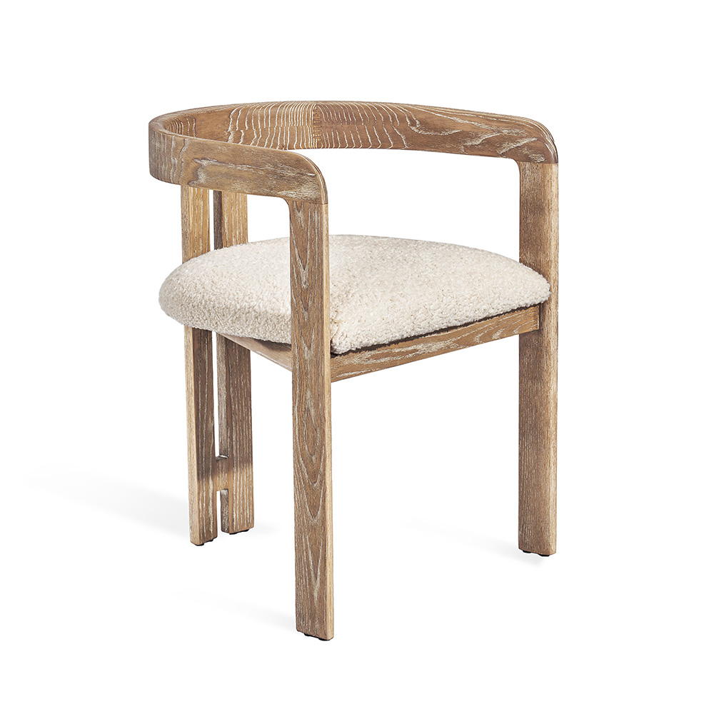 A beach ceruse finish adds warmth to the modern flair of the Burke Dining Chair. Custom fabric selection available.