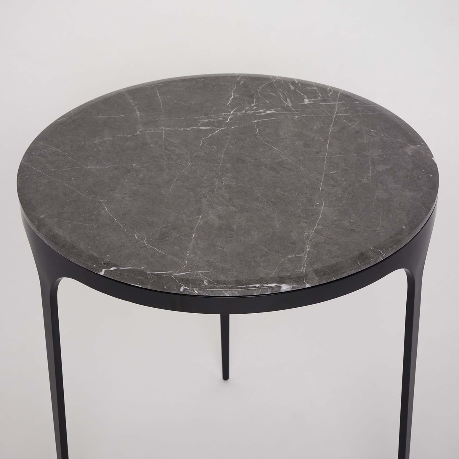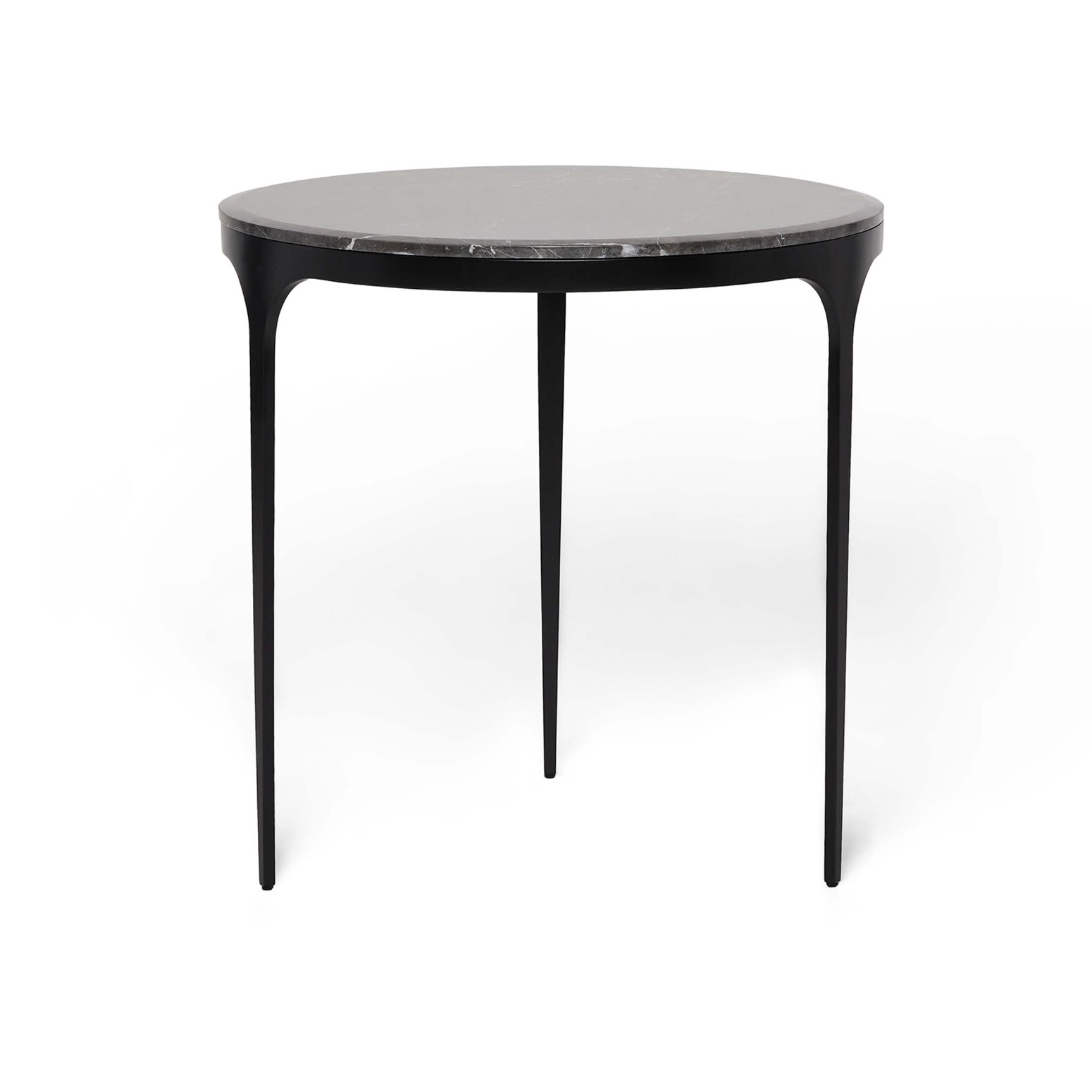 Making for a sophisticated accent, the Camilla Large Side Table features a stainless steel base in a matte black finish and a Wyndham Grey marble top.