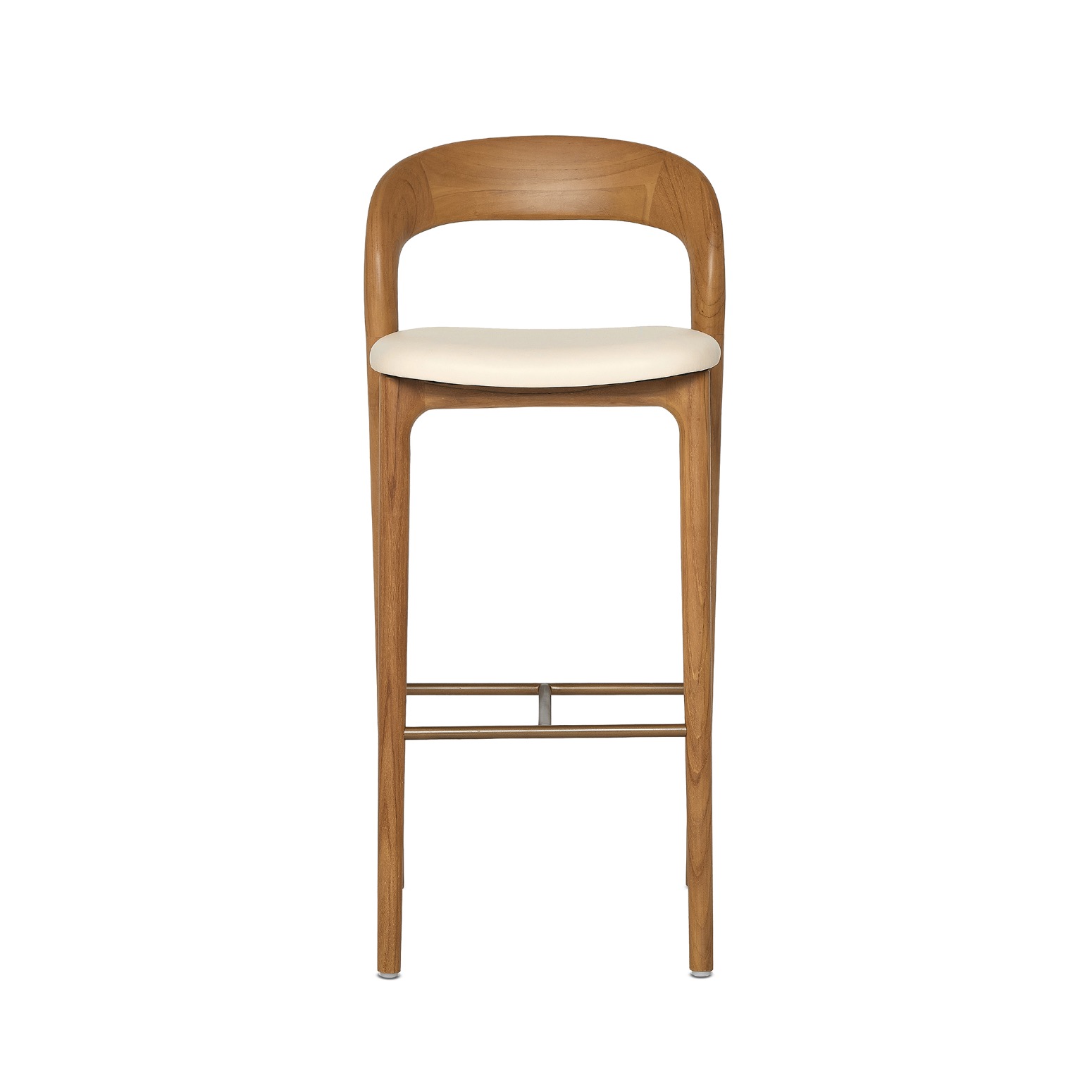 Channeling some serious Scandi-chic, the Felix Bar Stool features an airy teak frame in a tawny finish paired with grove vegan leather and classic brass stainless steel accents.
