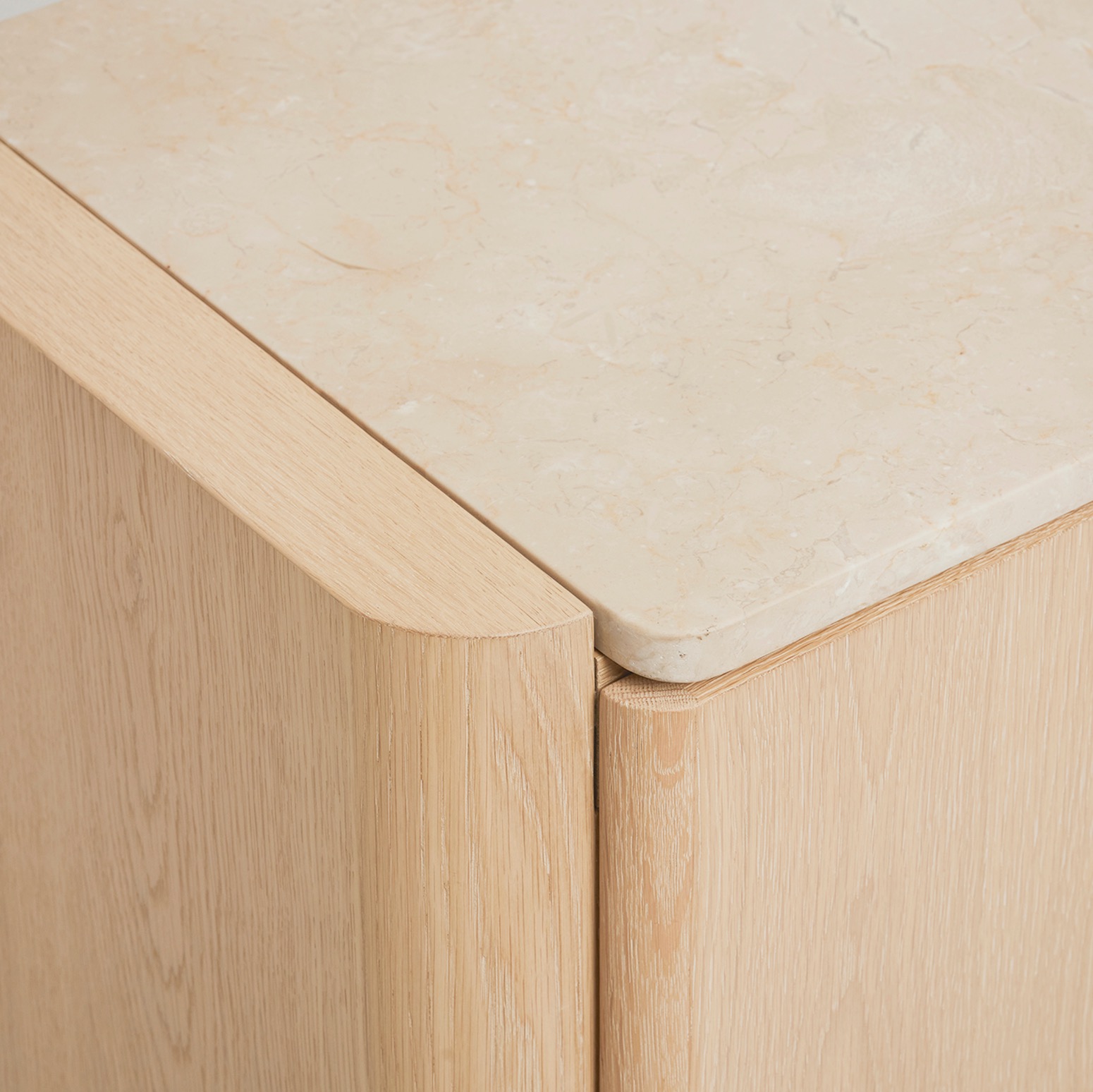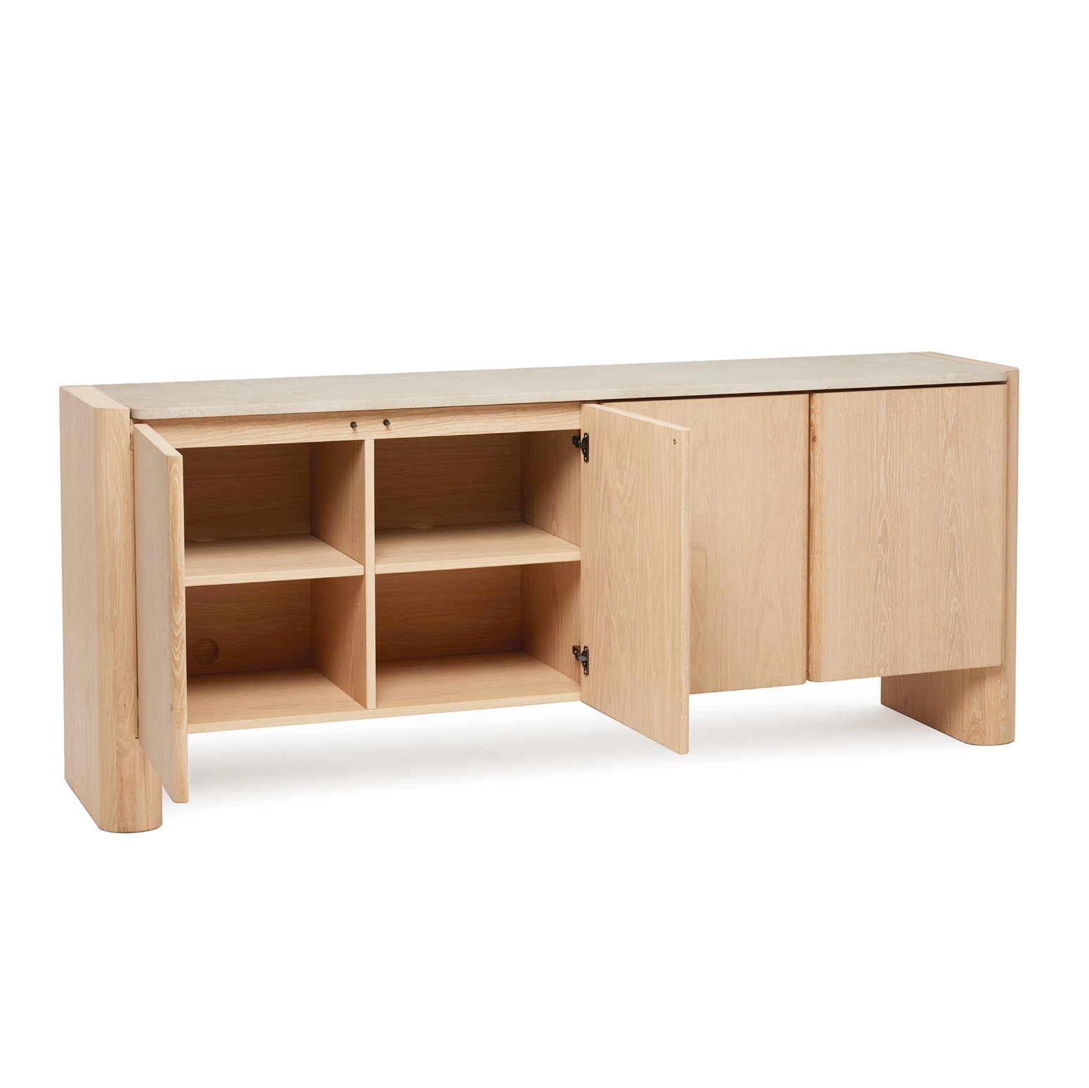 Substantial yet airy, versatile yet luxe, the Arden Credenza is crafted of oak in a saddle finish and topped with honey marble.
