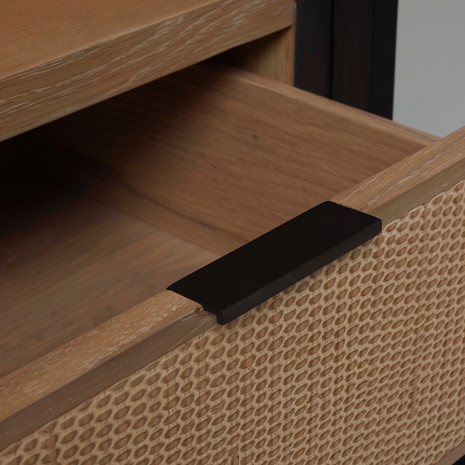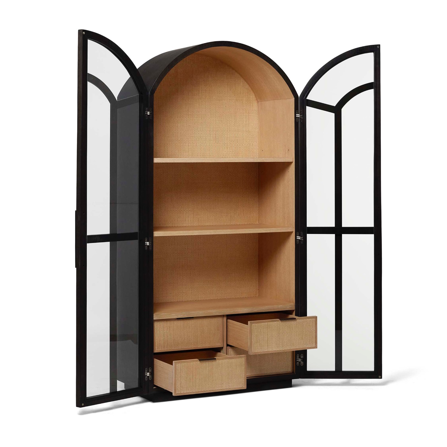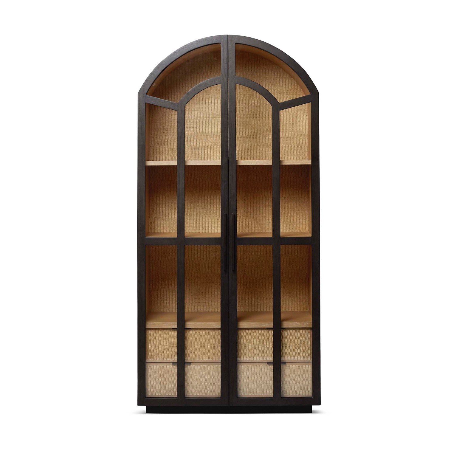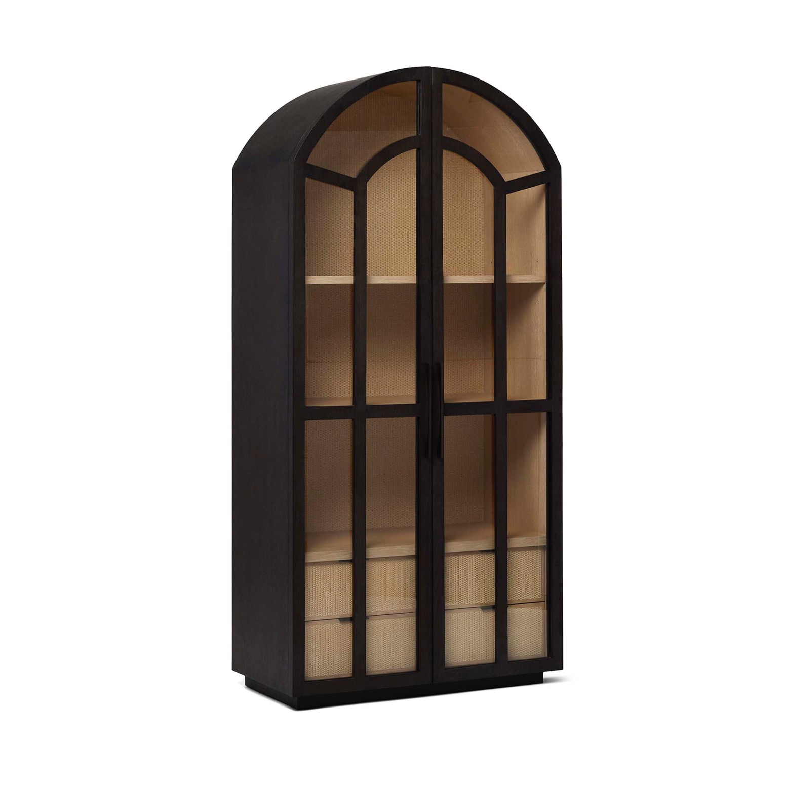 A storage essential, the oak Claudine Glass Door Cabinet in a Coffee finish exterior, and Husk rattan interior is anything but boring thanks to its fabulous proportions and versatile style.