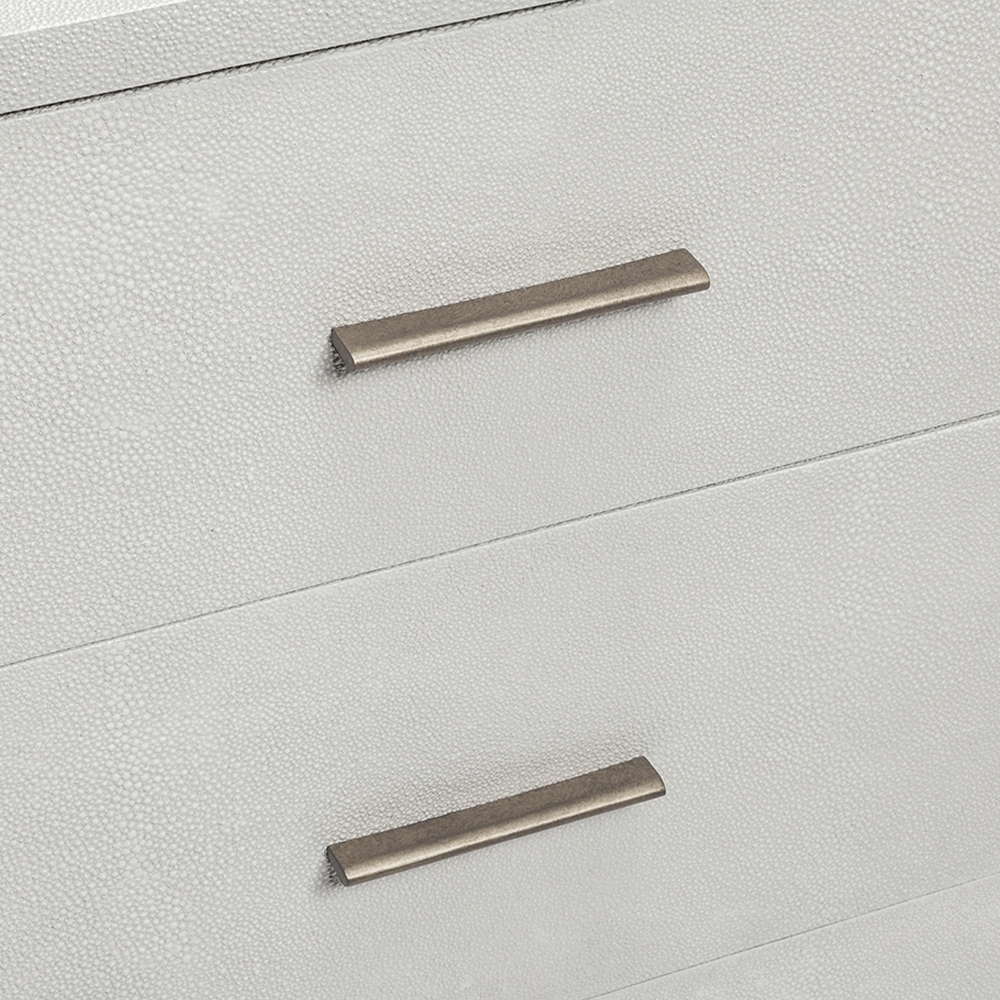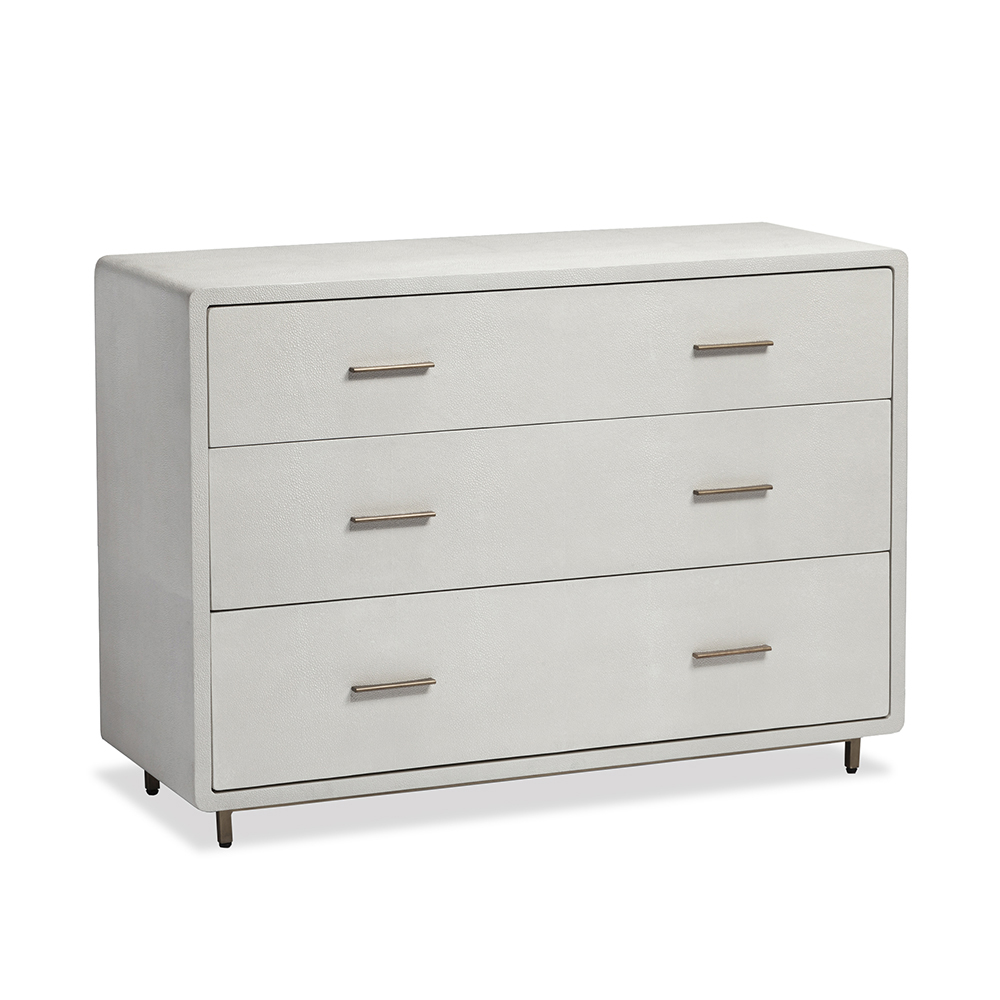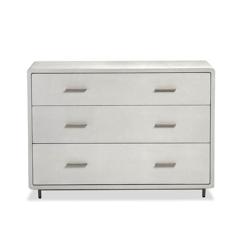 Faux shagreen in our bone finish gives the Calypso 3-Drawer Chest an Art Deco vibe that looks totally chic and of-the-moment.