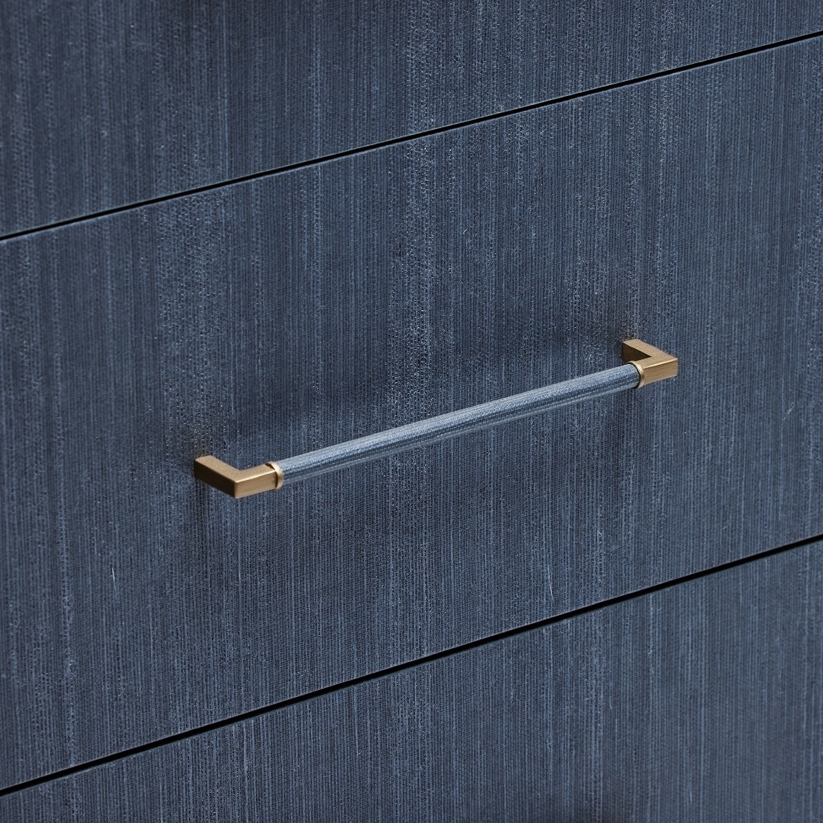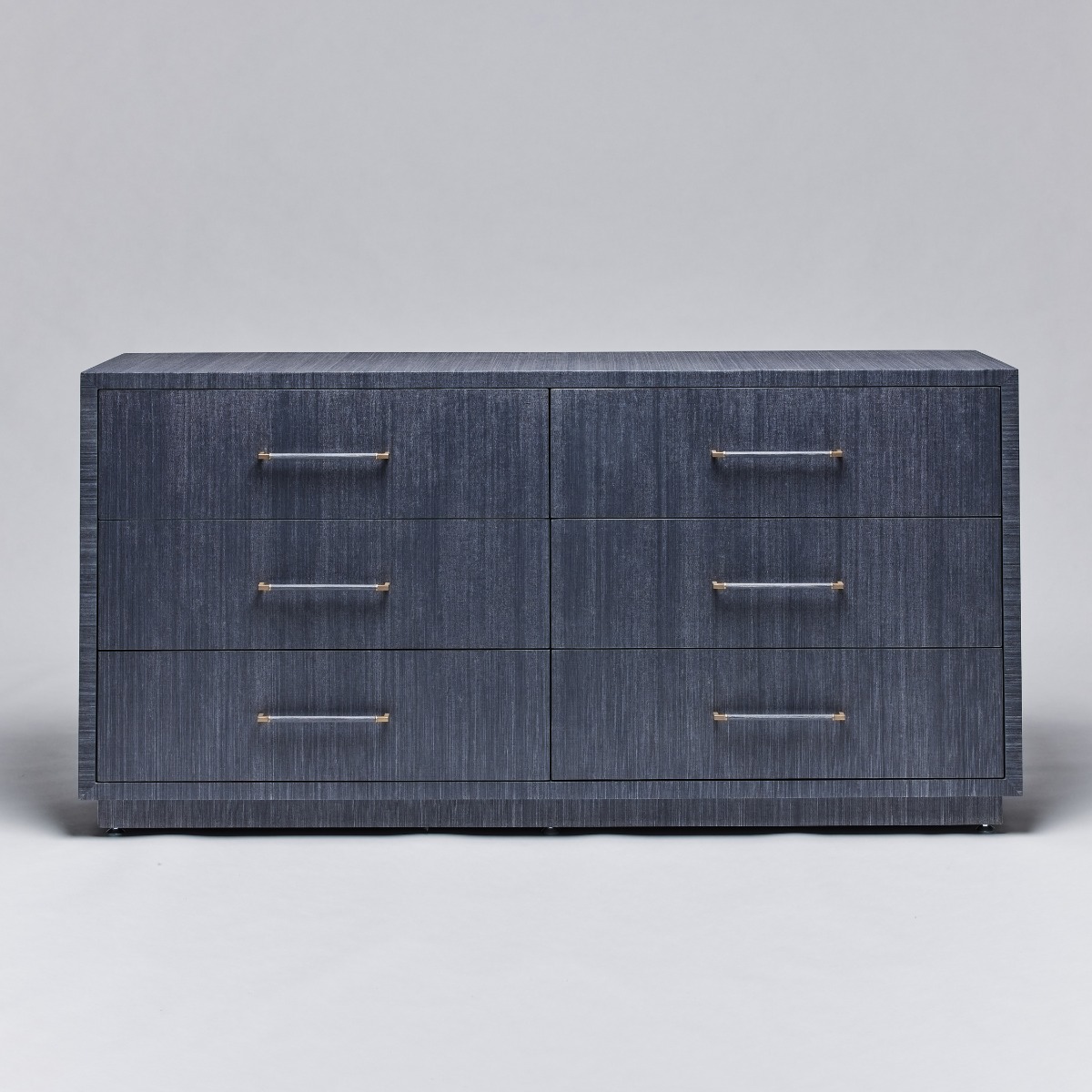 The clean lines of the Taylor 6 Drawer Chest are transformed into a coastal statement piece thanks to a navy sisal texture and iron pulls in antique brass.