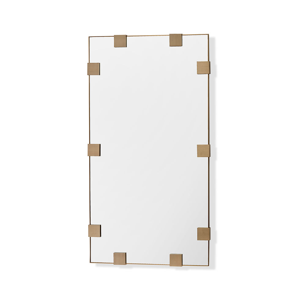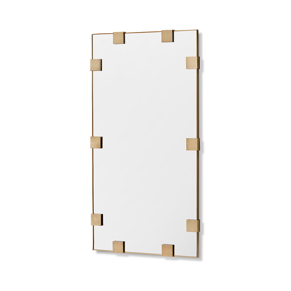 Evoking a dramatically sized clip frame, the Nippon Mirror makes a fabulous statement with its pairing of mirror and stainless steel finished in brushed brass.