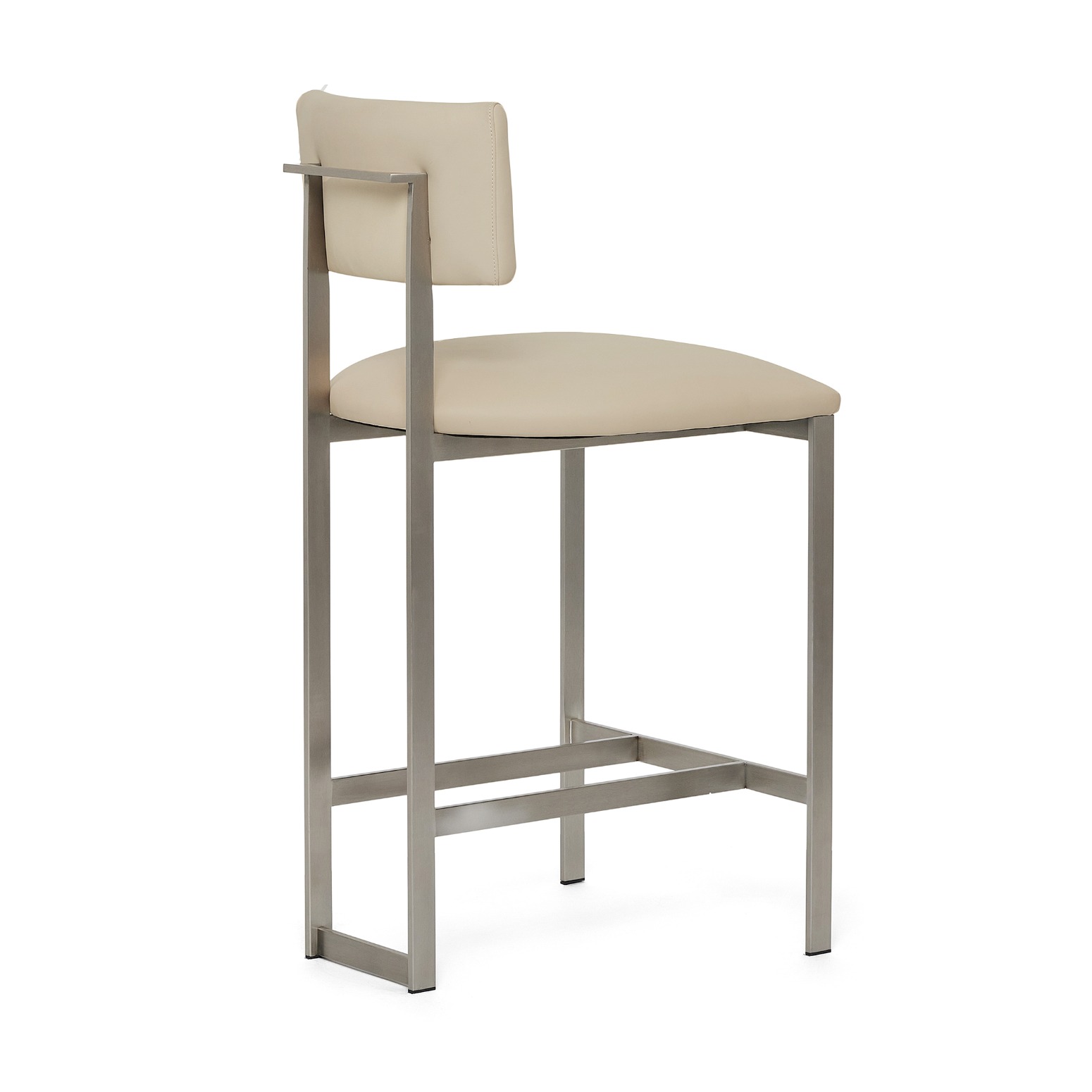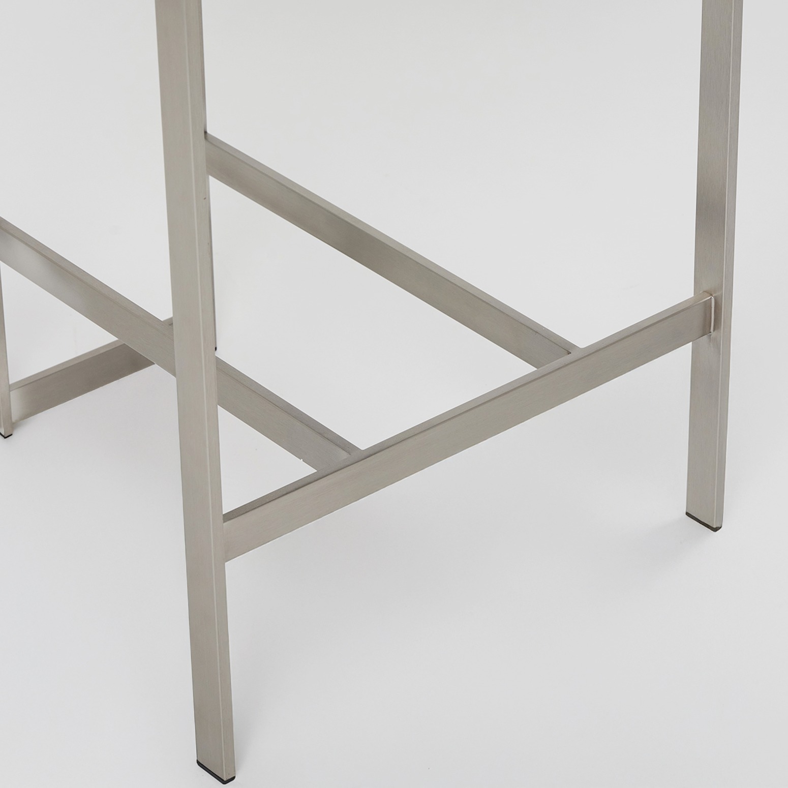 Thanks to a bold geometric stainless steel base in a brushed nickel finish, the Landon II Counter Stool makes a fabulous statement. Custom fabric selection available.
