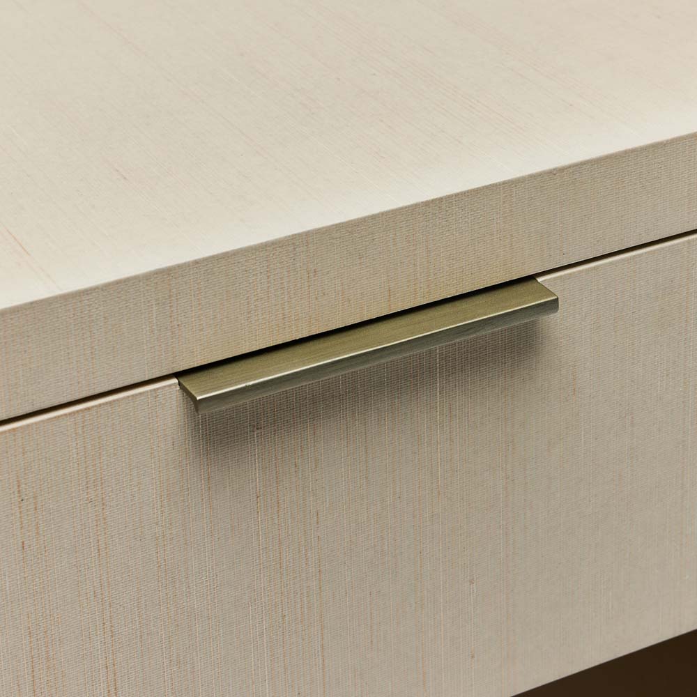 The Montaigne Bedside Chest is anything but sleepy thanks to the organic texture of desert sisal and the chic, clean line of an iron pull in a champagne silver finish.