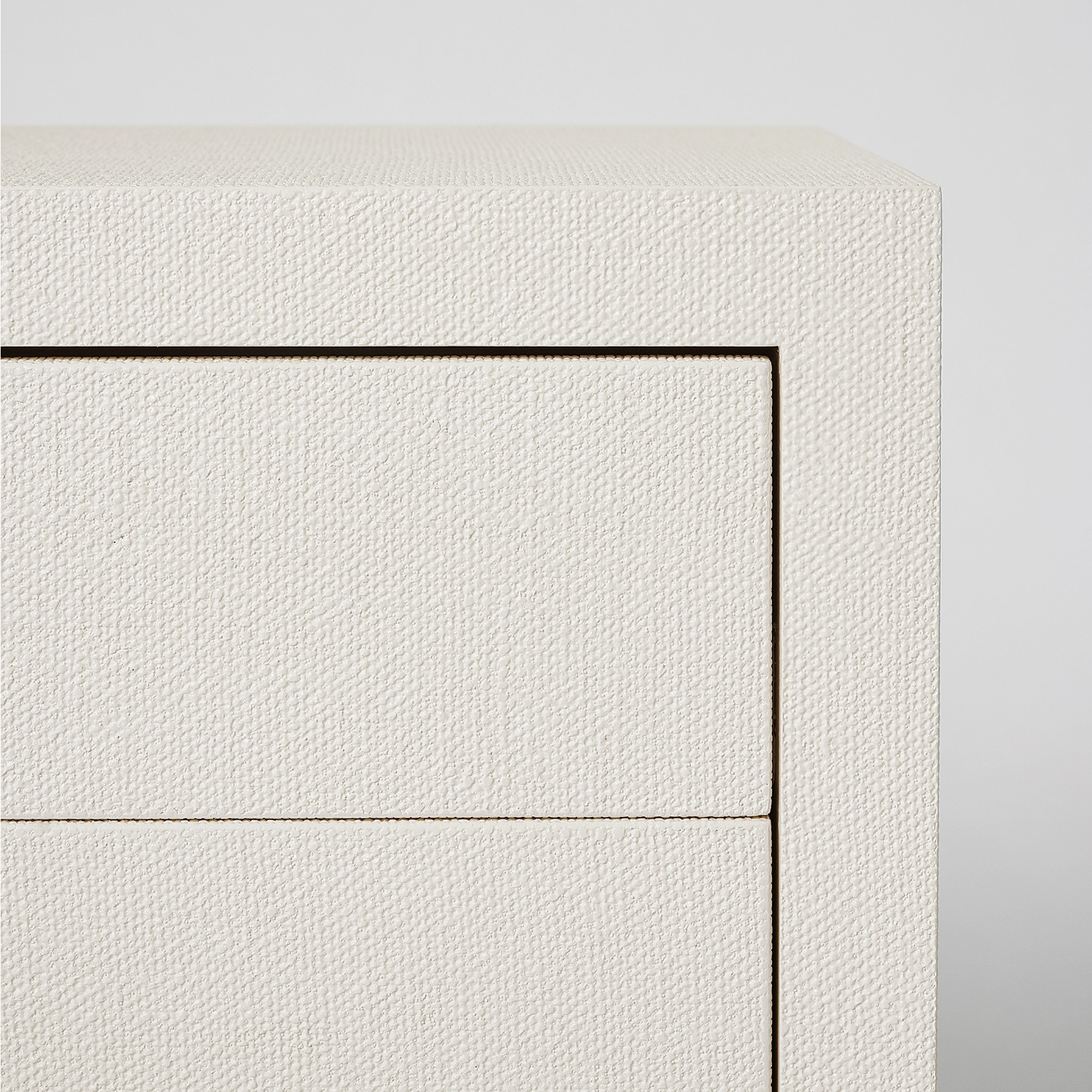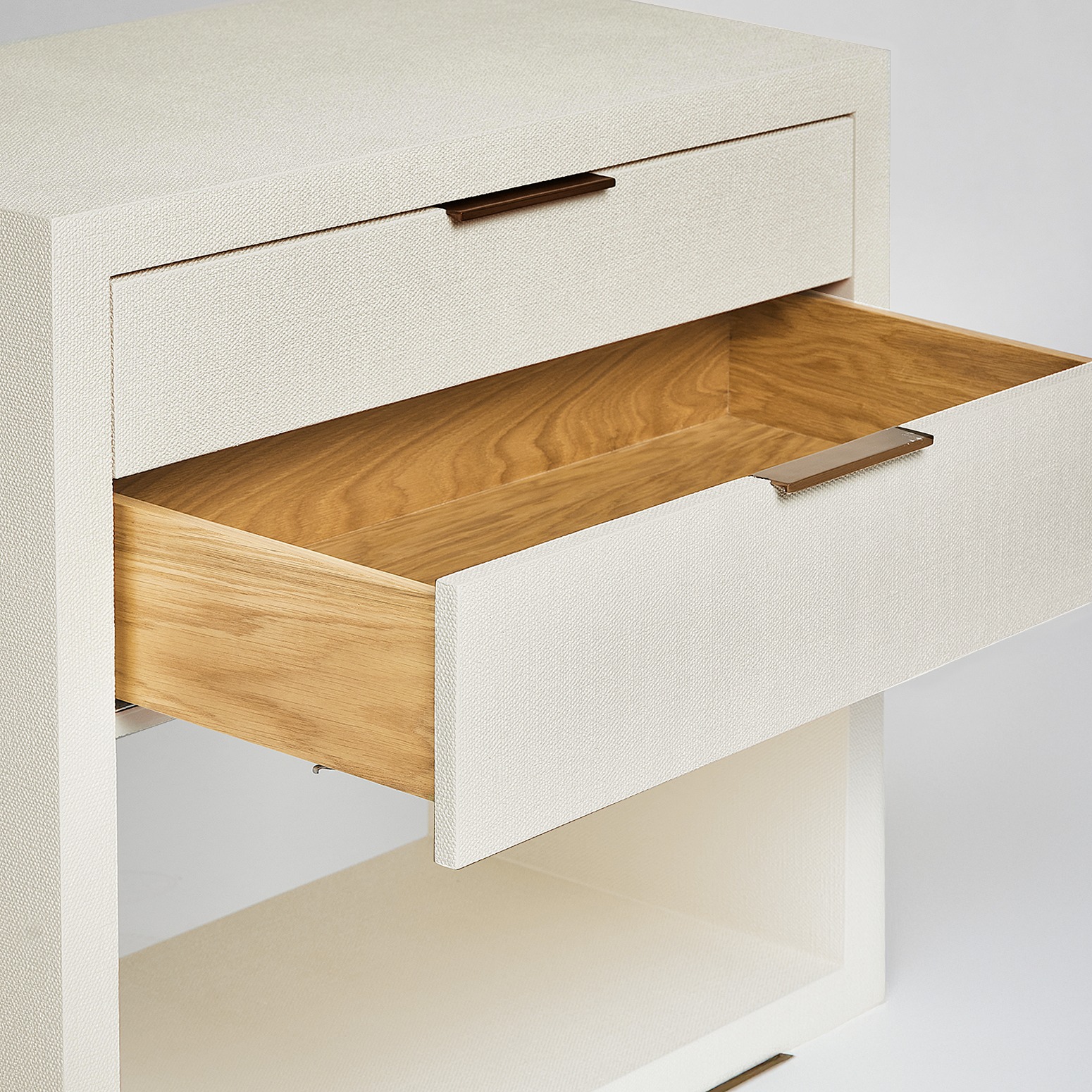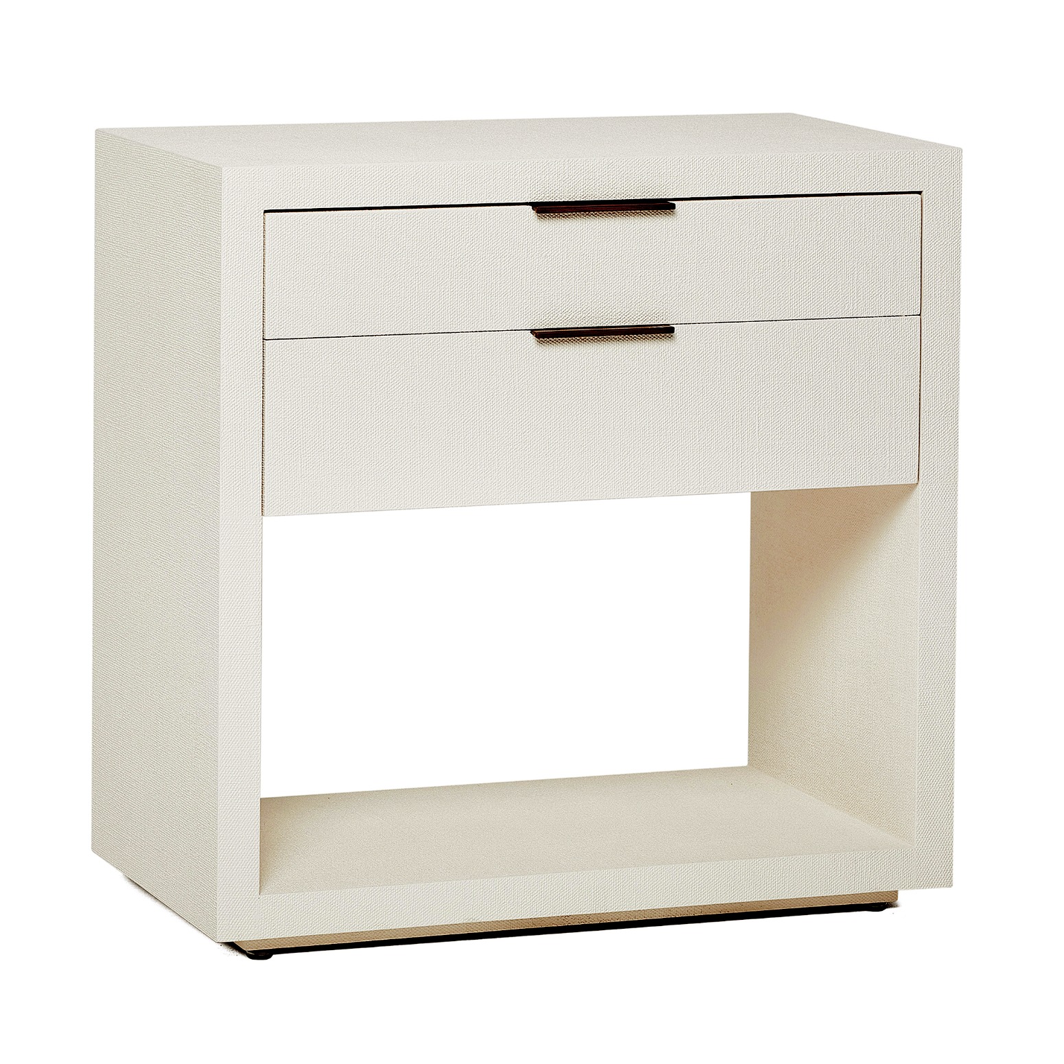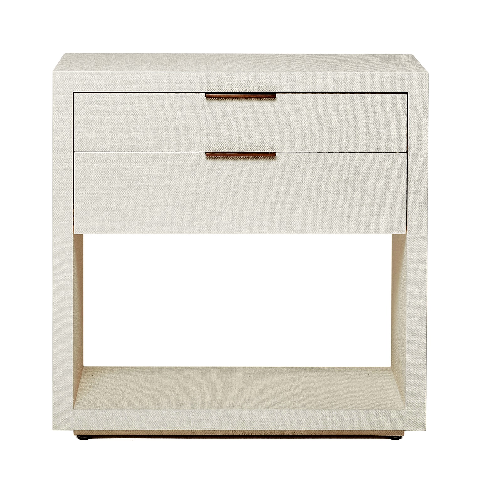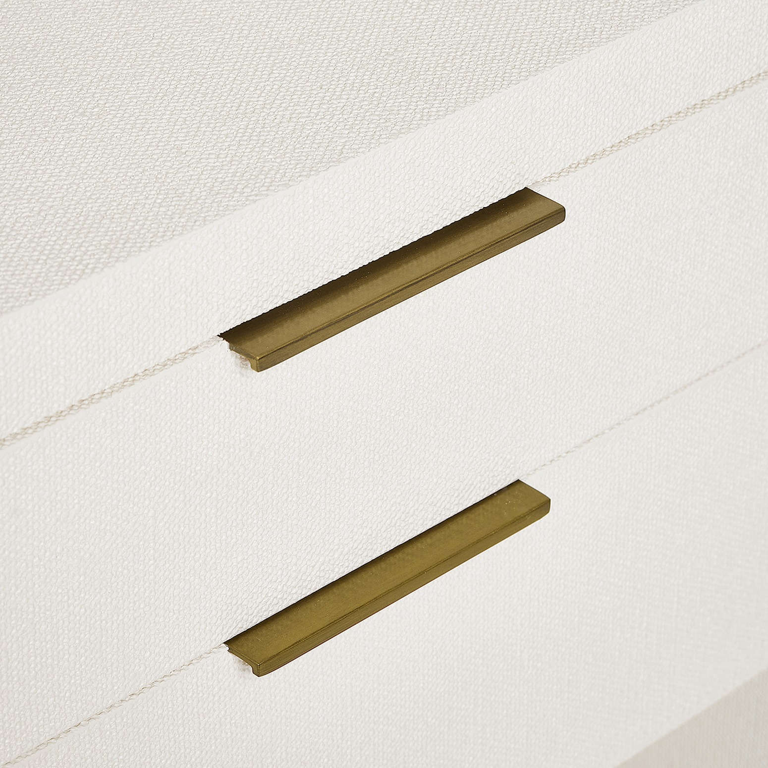 The Montaigne Tall Bedside Chest is anything but sleepy thanks to the organic texture of white faux linen paired with simply chic metal drawer pulls in an antique brass finish.