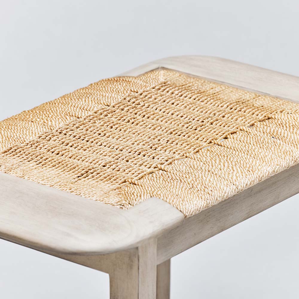 With a nod to Danish modern lines, the Juno Bench is an organic stunner thanks to its marriage of washed taupe sungkai wood and natural abaca rope.
