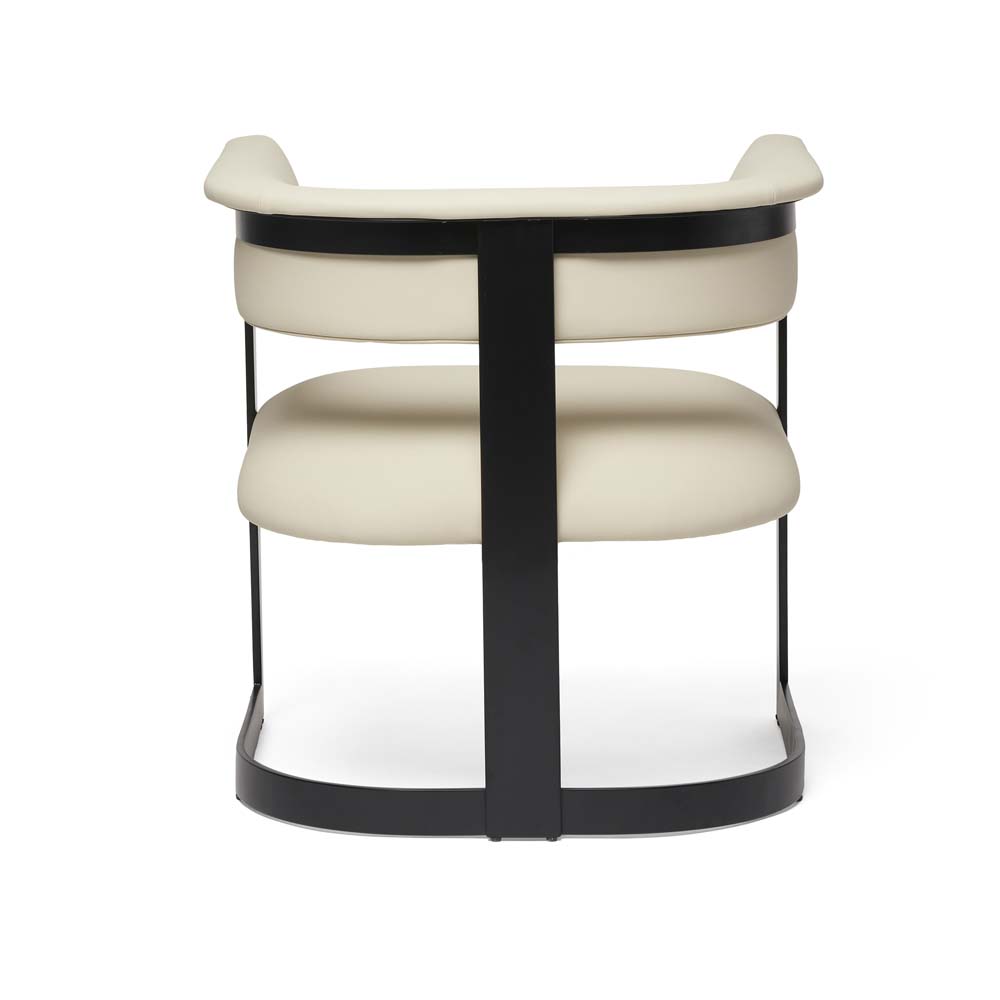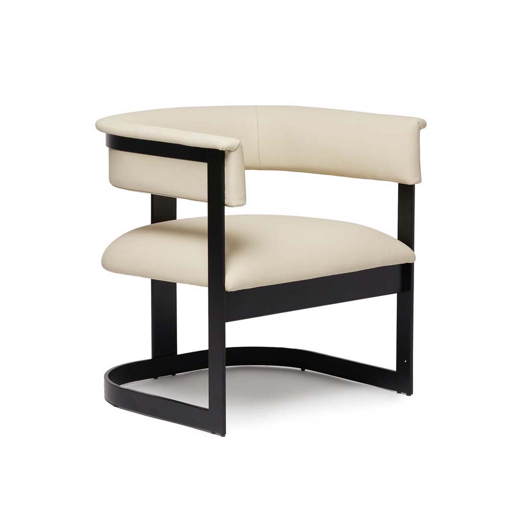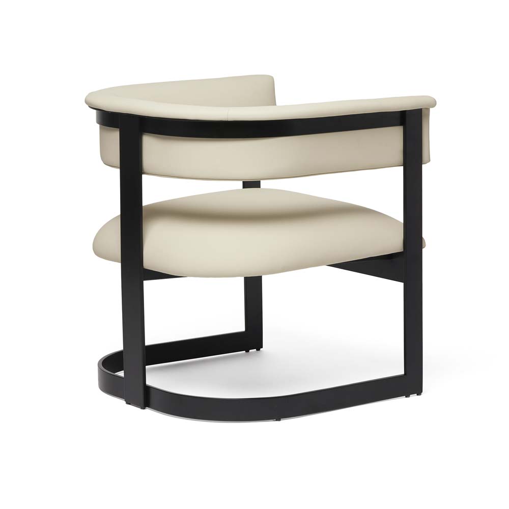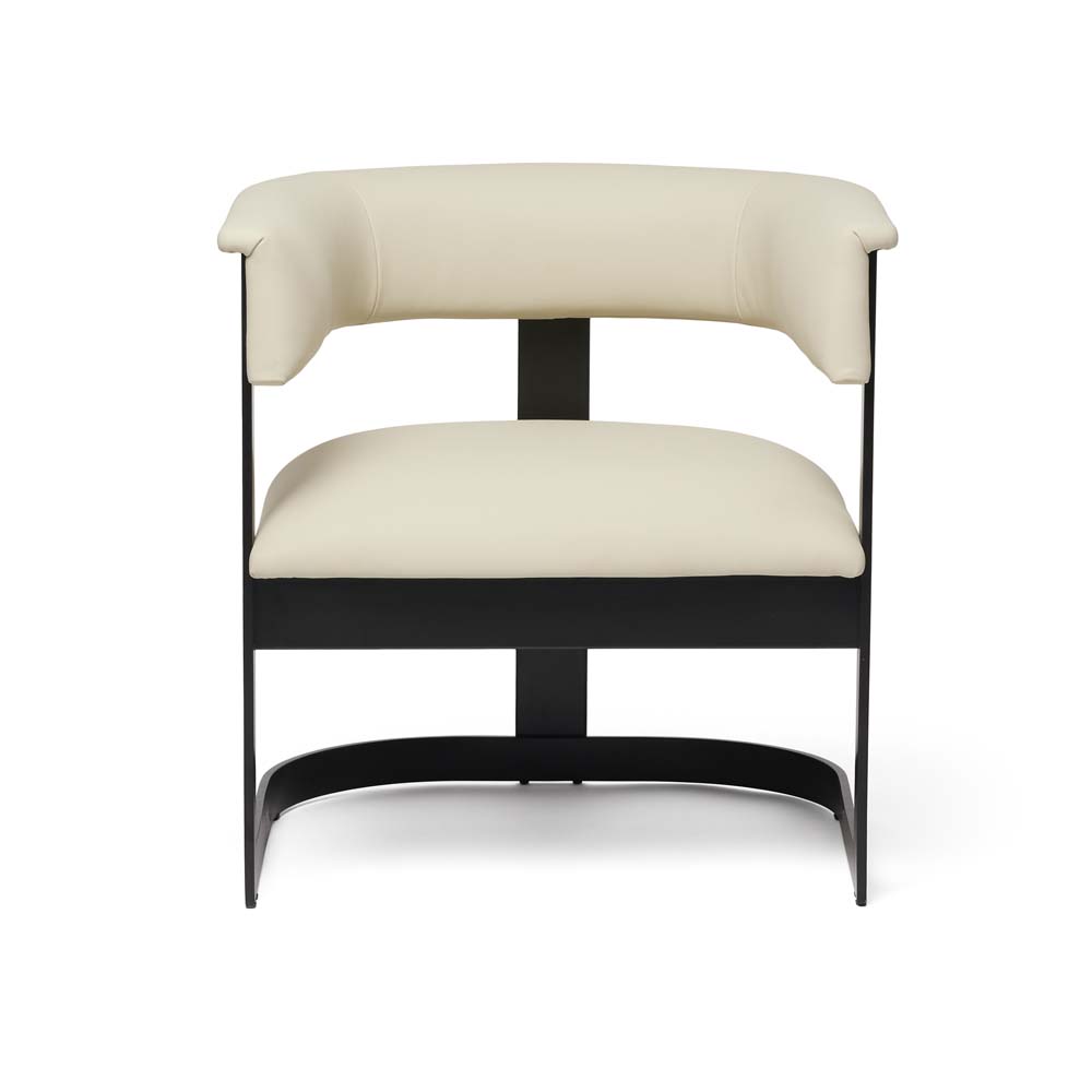 Influenced by art moderne but totally contemporary, the Darcy II Lounge Chair boasts a streamlined stainless steel frame in matte black and buff cream leather upholstery.