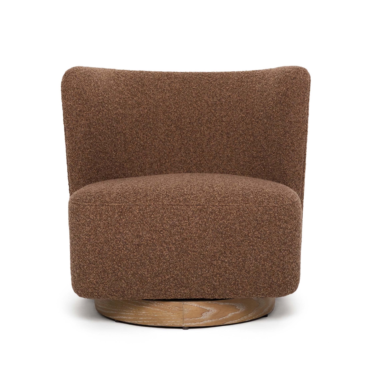 With its curved back, fabric upholstery in Baja ridge and whitewash ash base, the plush Dorian Swivel Lounge Chair beckons.