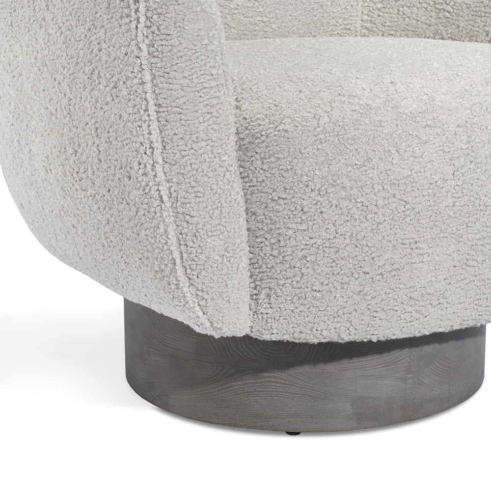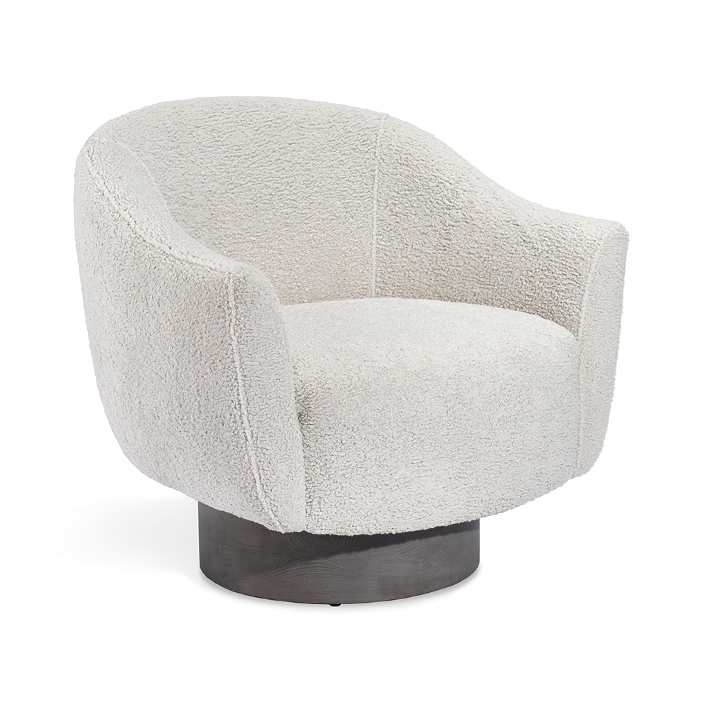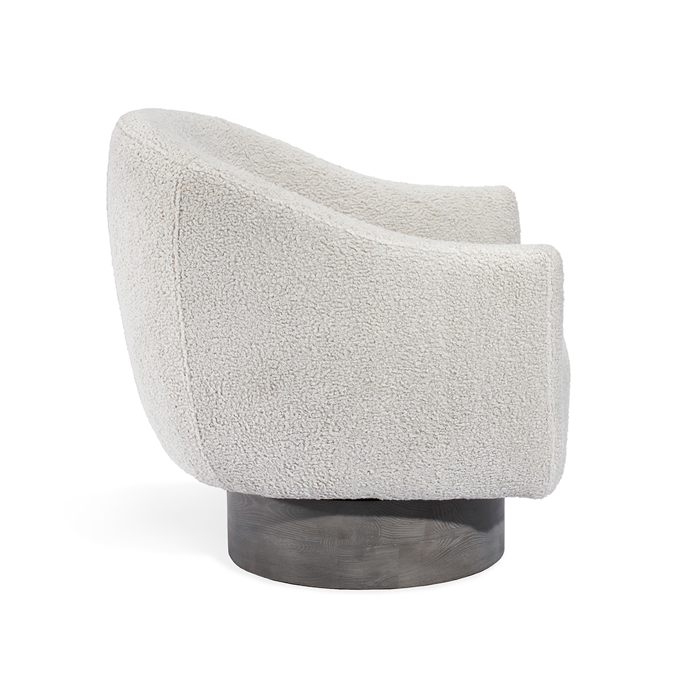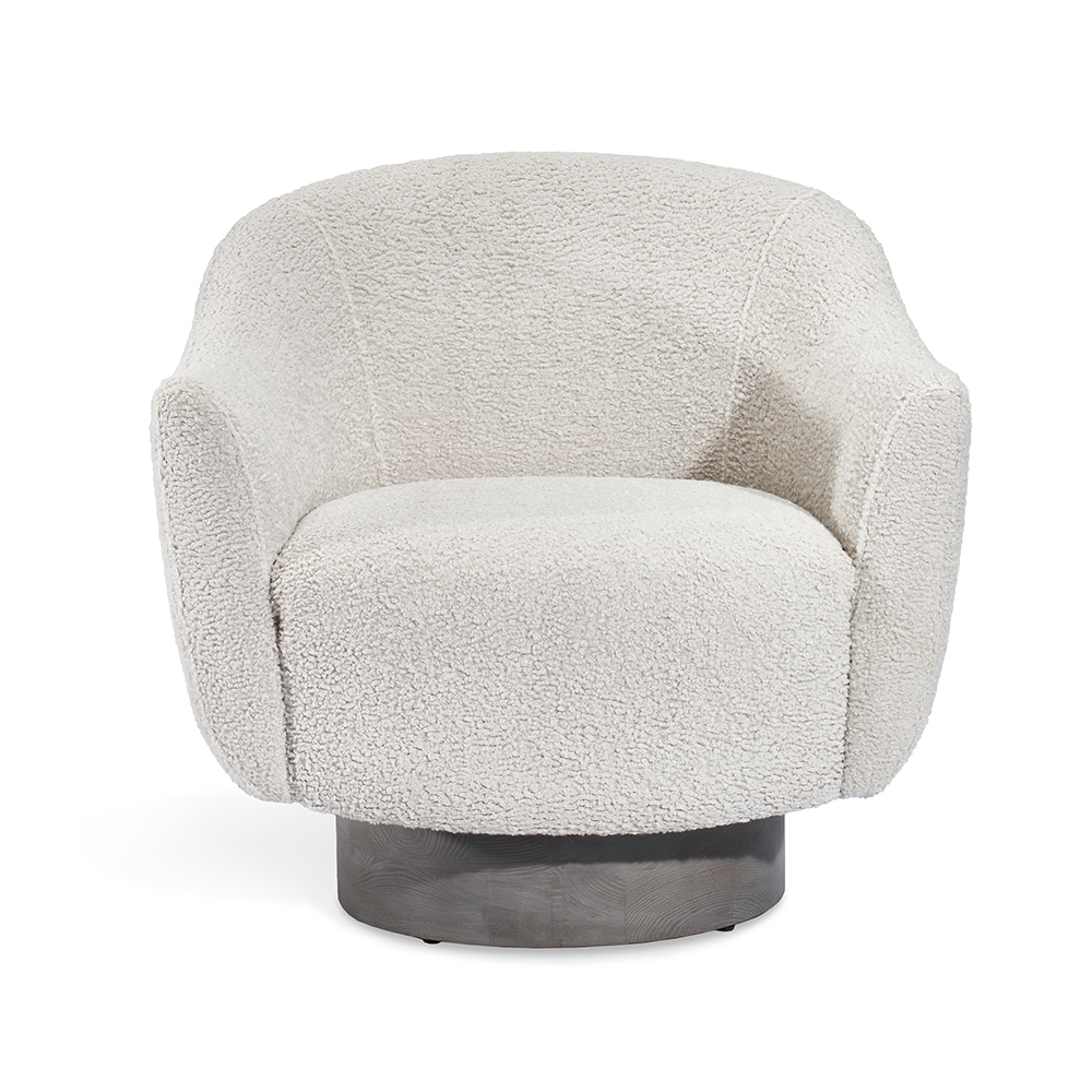 Featuring haze faux shearling and an ash base in a grey wash, the Simone Swivel Chair effortlessly combines comfort and style to stunning effect.