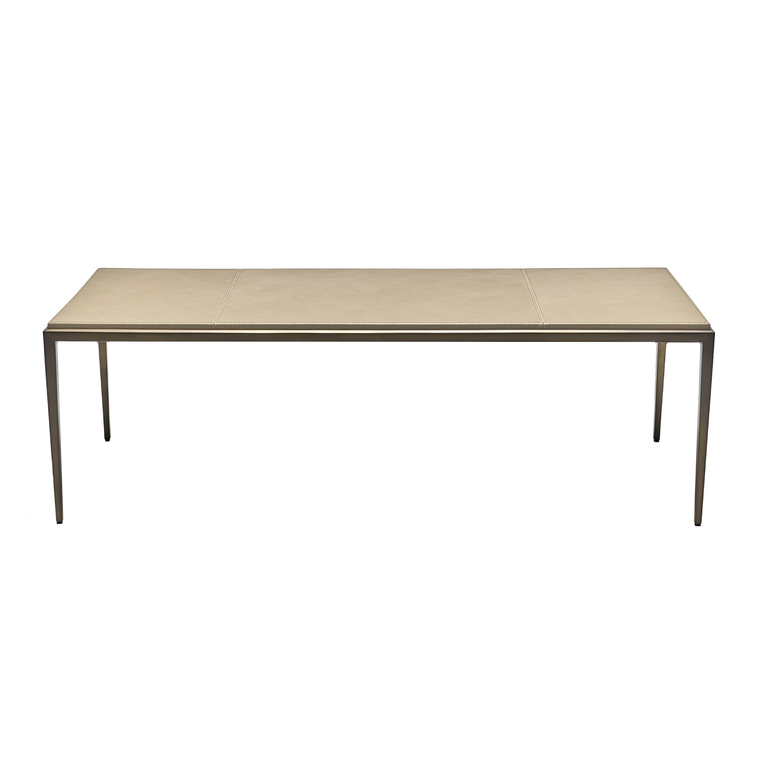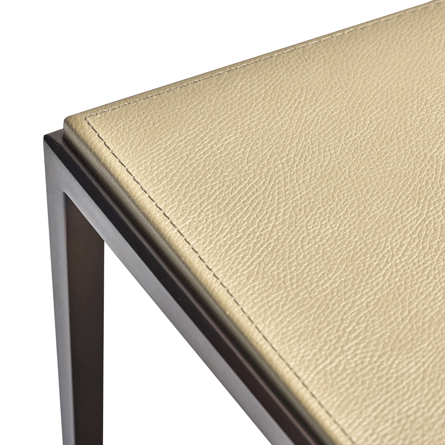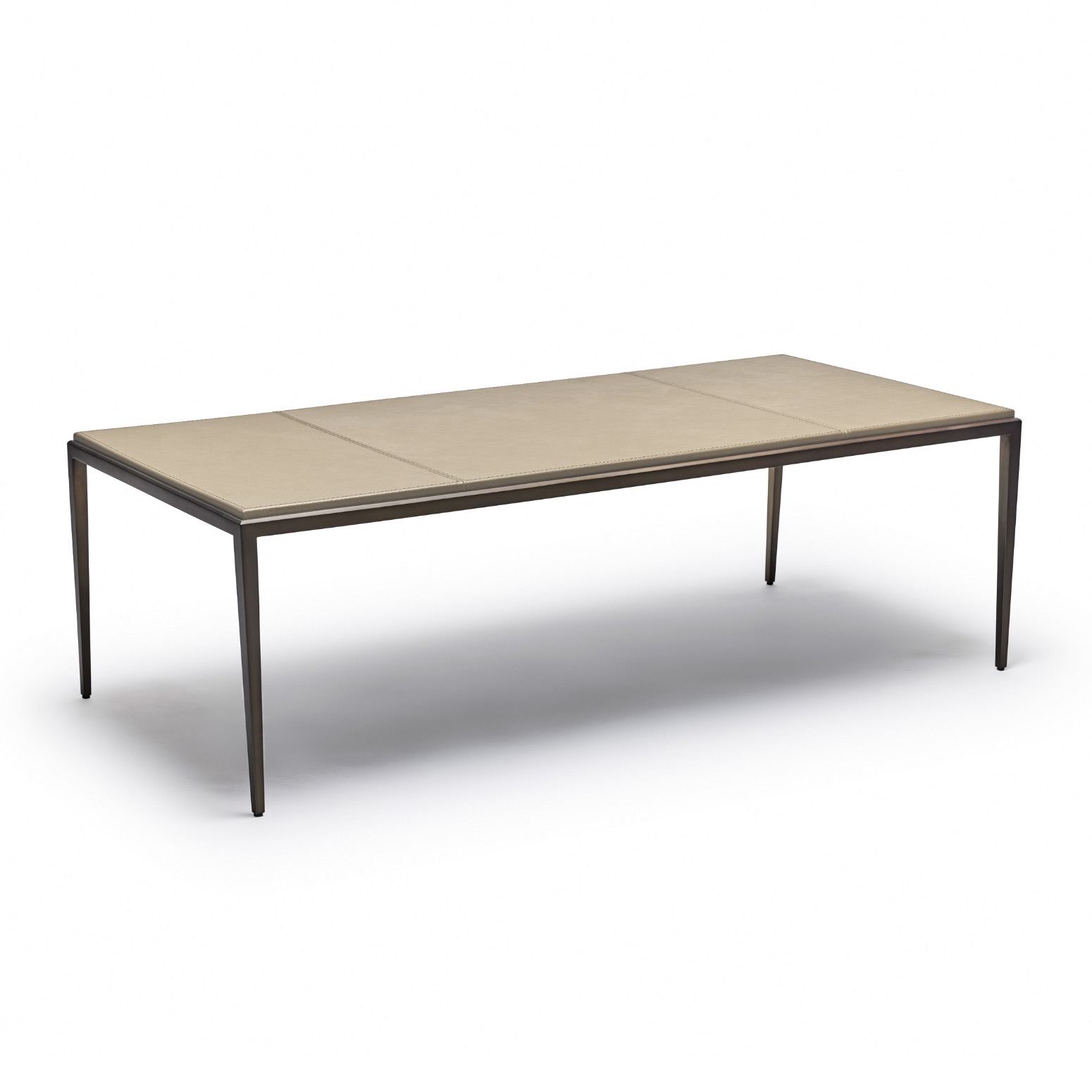 With a beach stone leather top and classic bronze cast iron legs, the Auburn Cocktail Table is an au courant take on a midcentury silhouette.