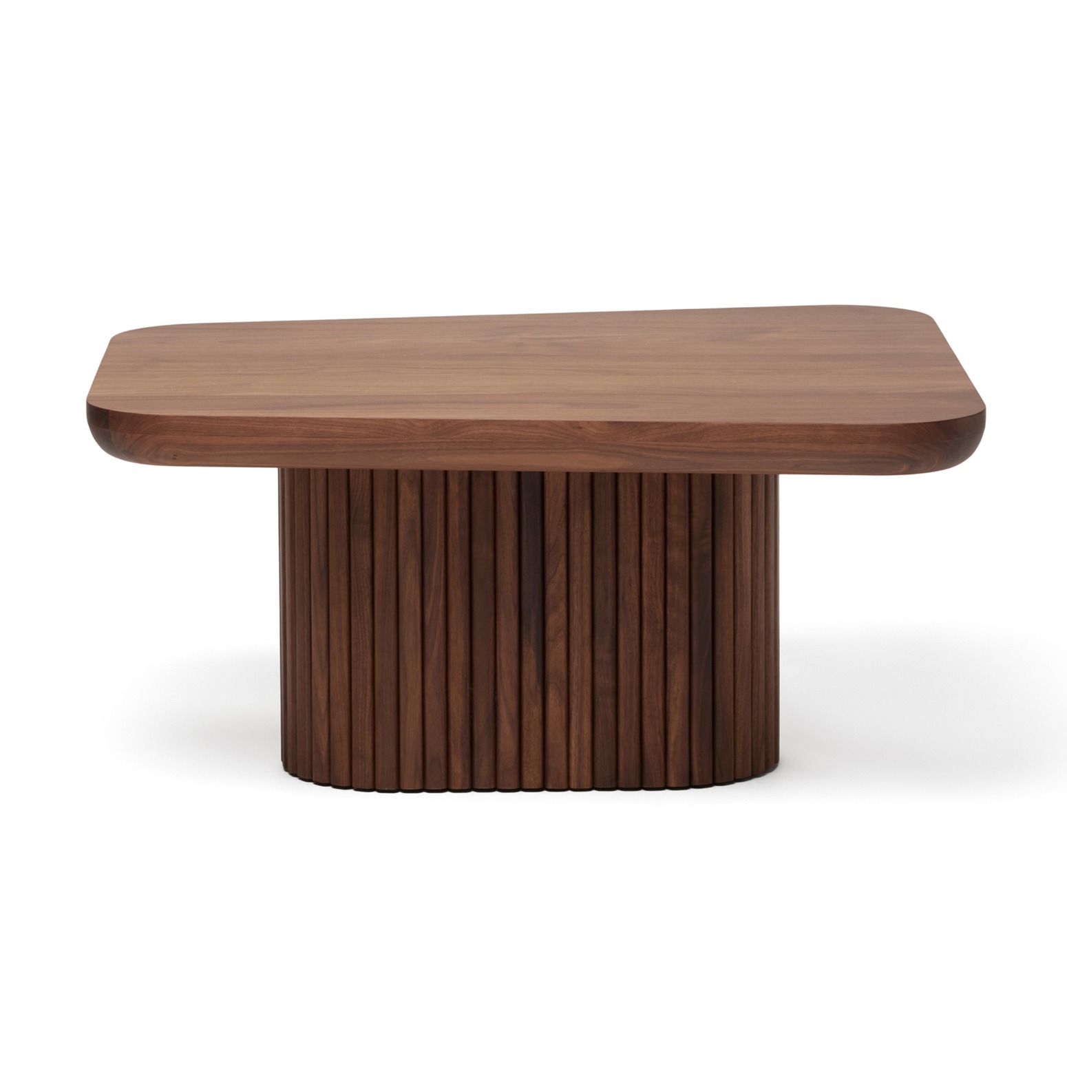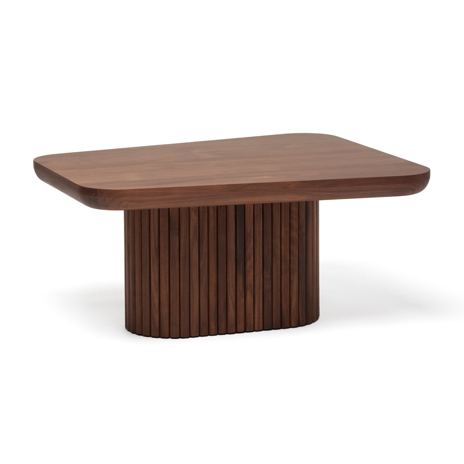 A precise fluted base plays off a surprising organic top to make the walnut Carrabelle Large Cocktail Table a truly handsome statement piece.