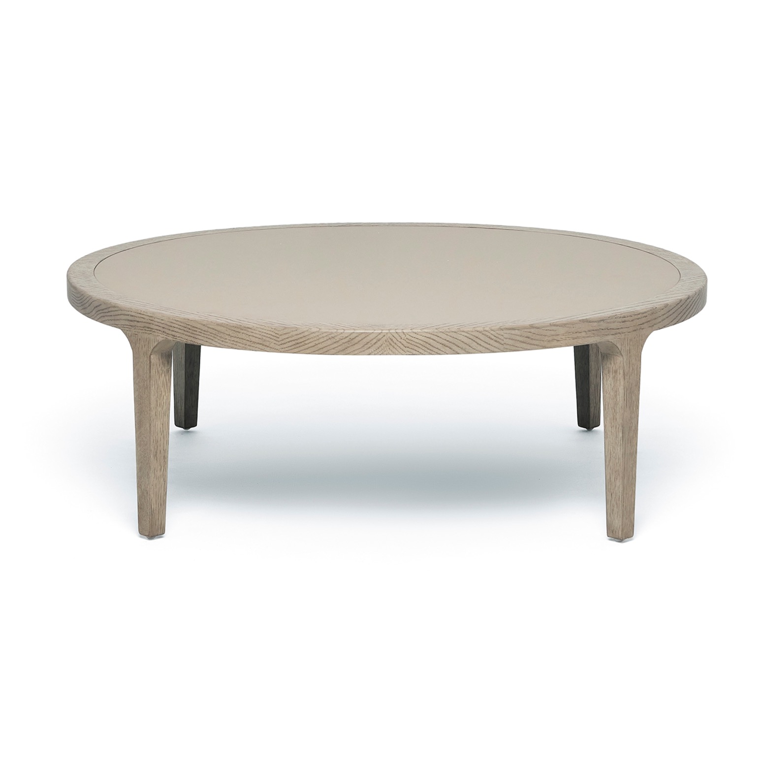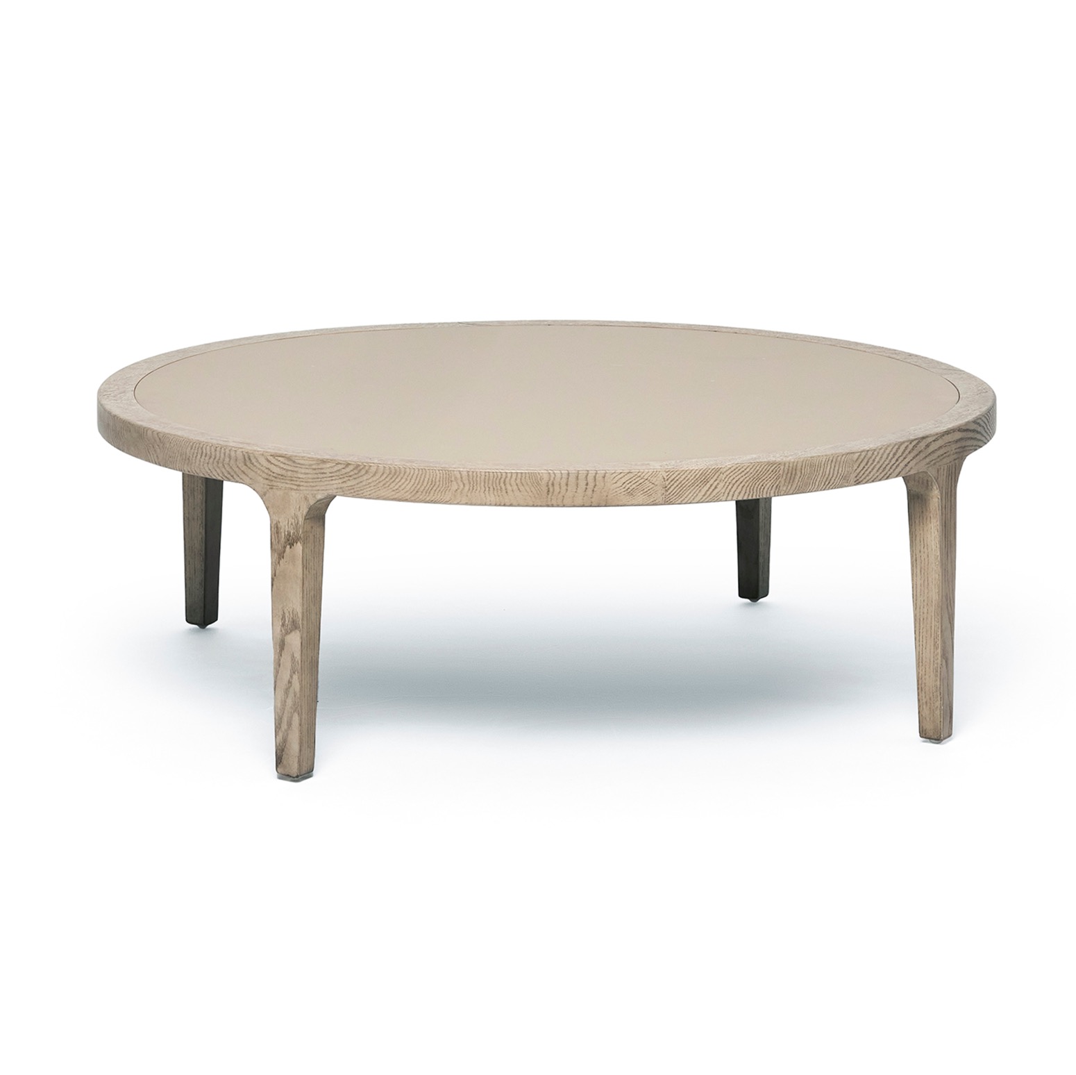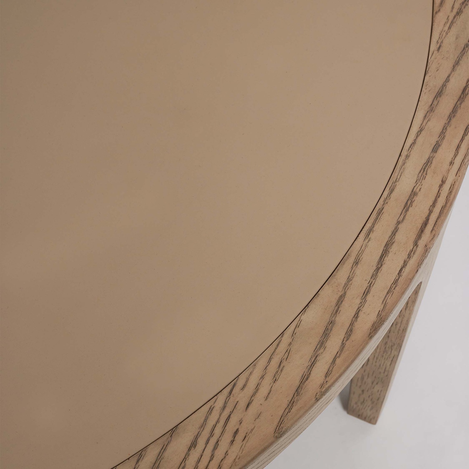 The chicest of pairings, the Putney Cocktail Table boasts a vegan leather top in cream latte and an oak base in a washed taupe finish.