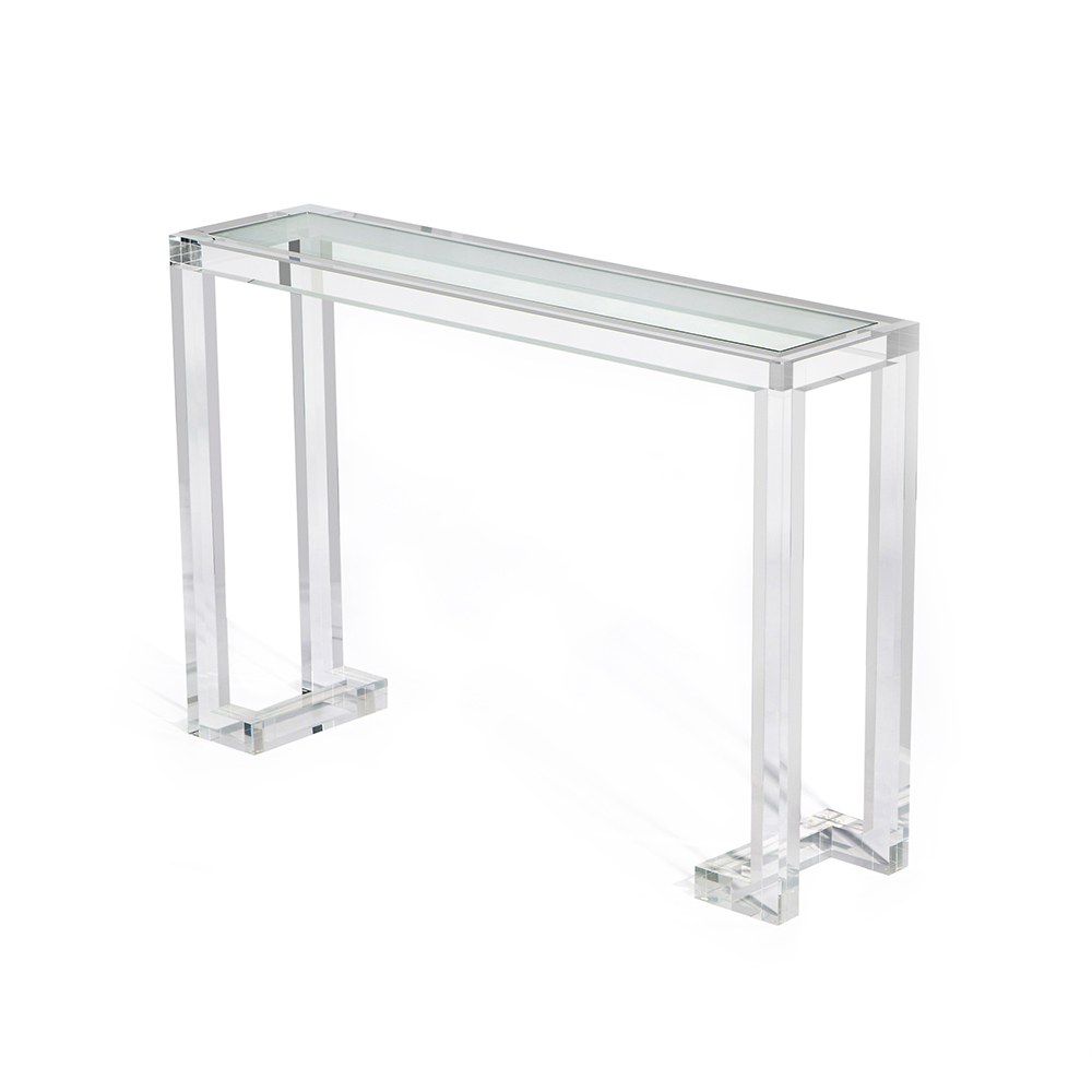 Clean and clear, the simple and utterly classic feel of the Ava Console Table brings the sophistication of acrylic and glass to complement any transitional environment.