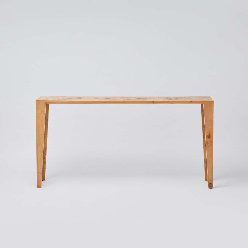 A simple Scandinavian silhouette showcases the stunning depth and intrigue of ash burl in the form of the Sherwood Sofa Table in a canyon finish.