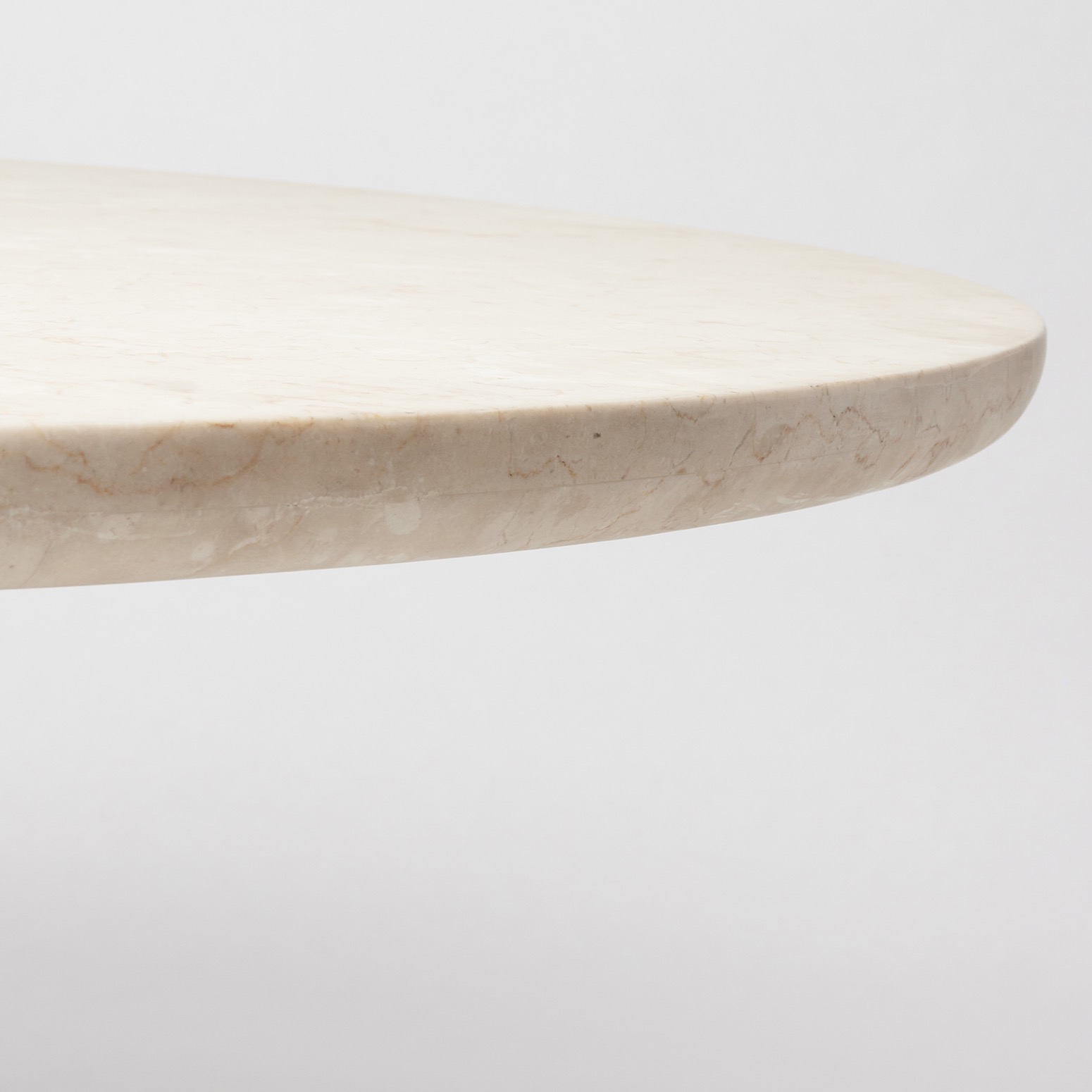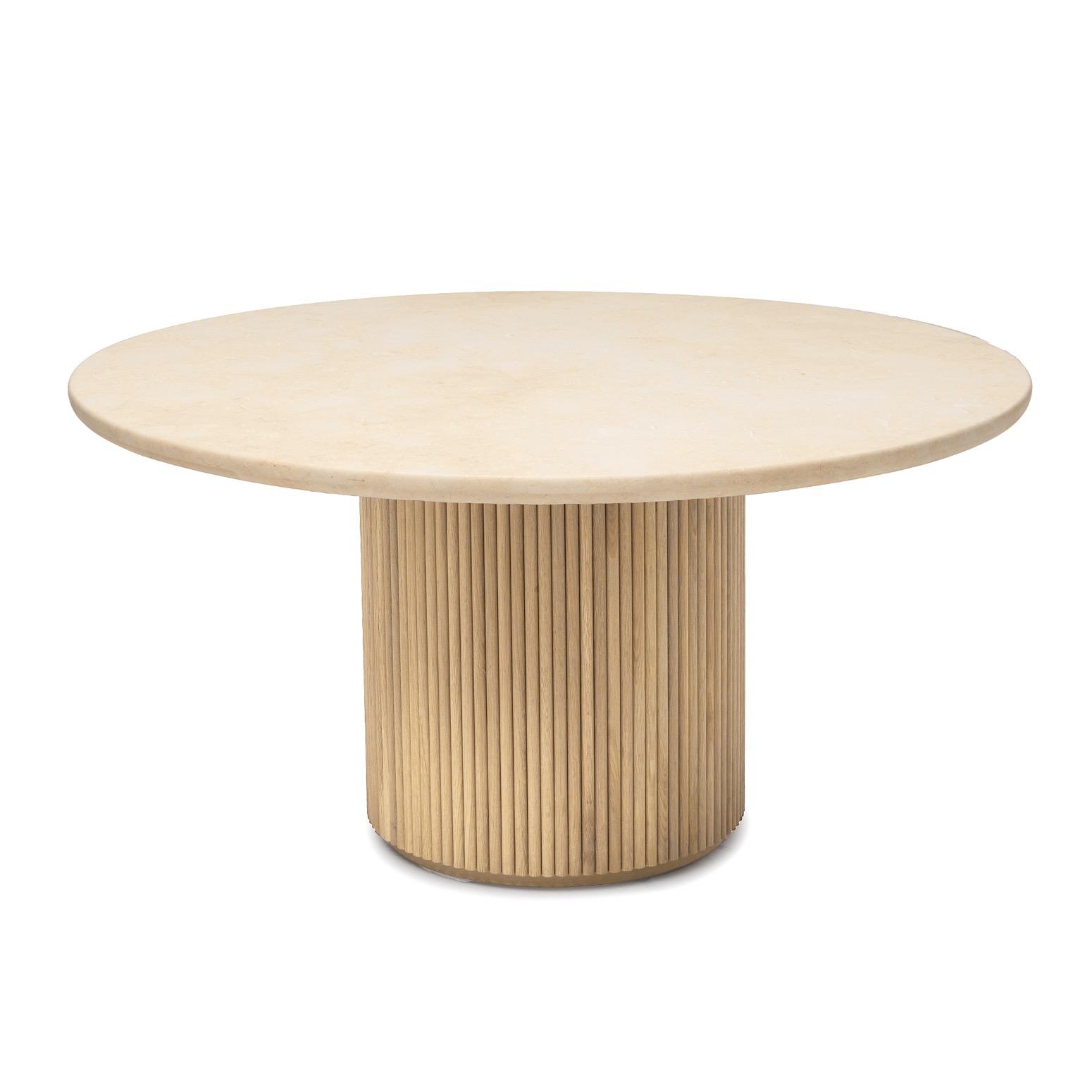 Topped with honey marble and boasting a fabulous, fluted oak base in saddle, the Laurel Round Dining Table makes a mixed materials statement.