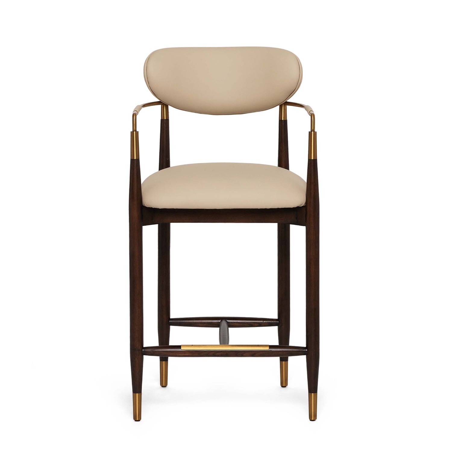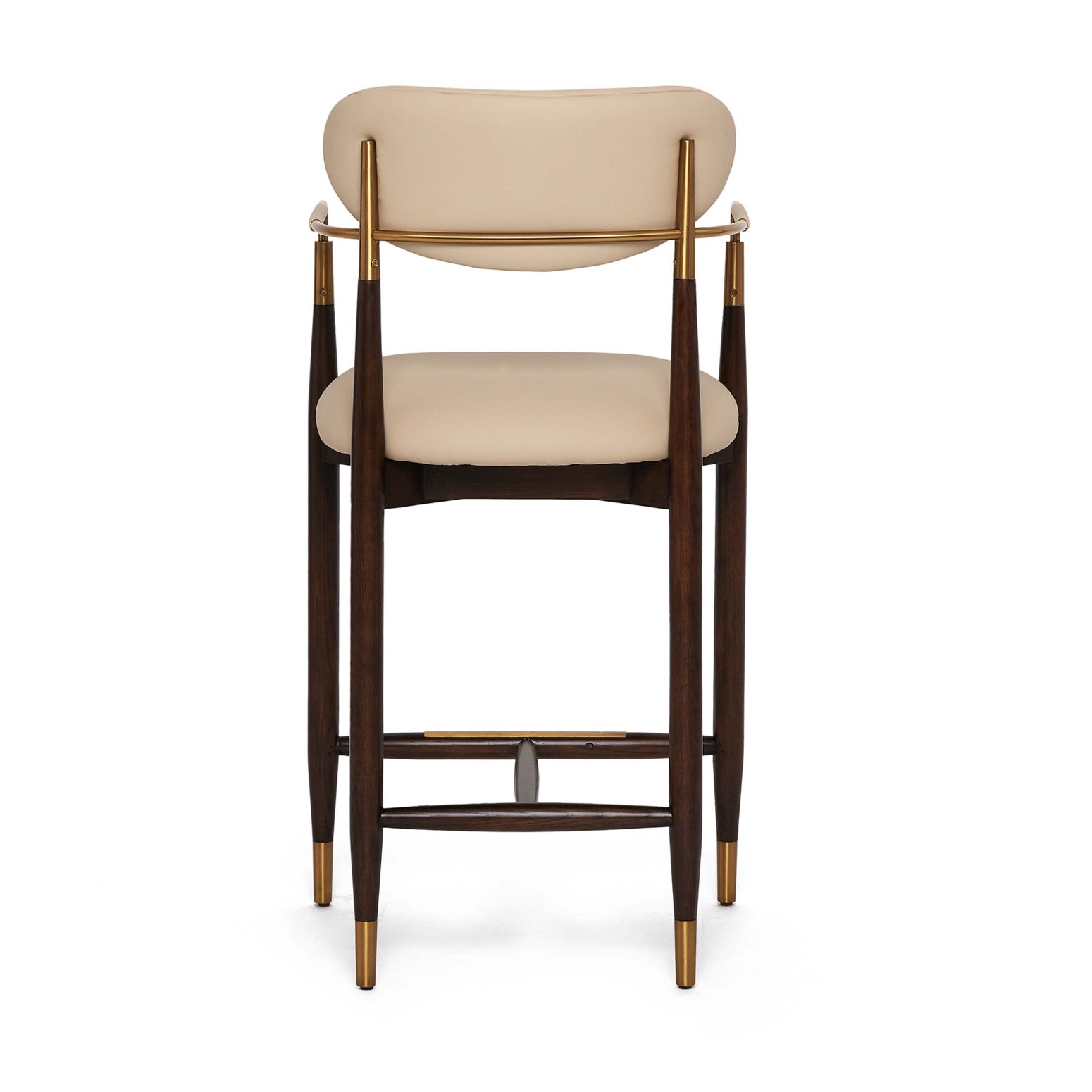 Crafted of walnut, satin brass-finished steel and vegan leather in cream latte, fabulous mixed materials bring statement-making style to the Cidra Counter Stool.