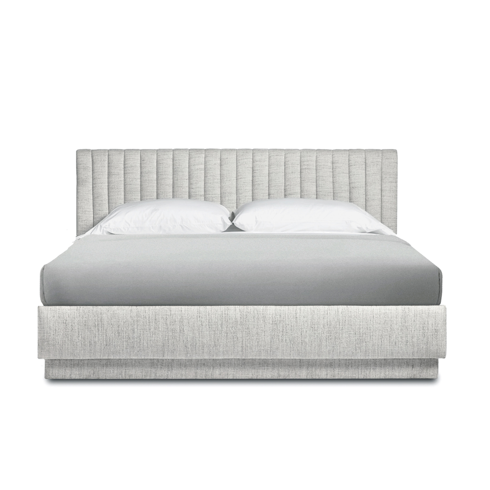 Art Deco-inspired and stunningly glamorous, the Skylar Queen Bed in Beach Heather features streamlined vertical channels on the headboard.