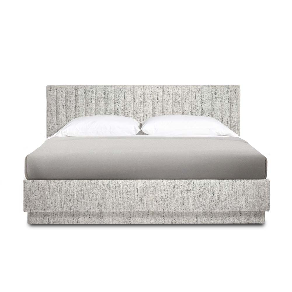 Art Deco-inspired and stunningly glamorous, the Skylar Queen Bed in Maya Jade features streamlined vertical channels on the headboard.