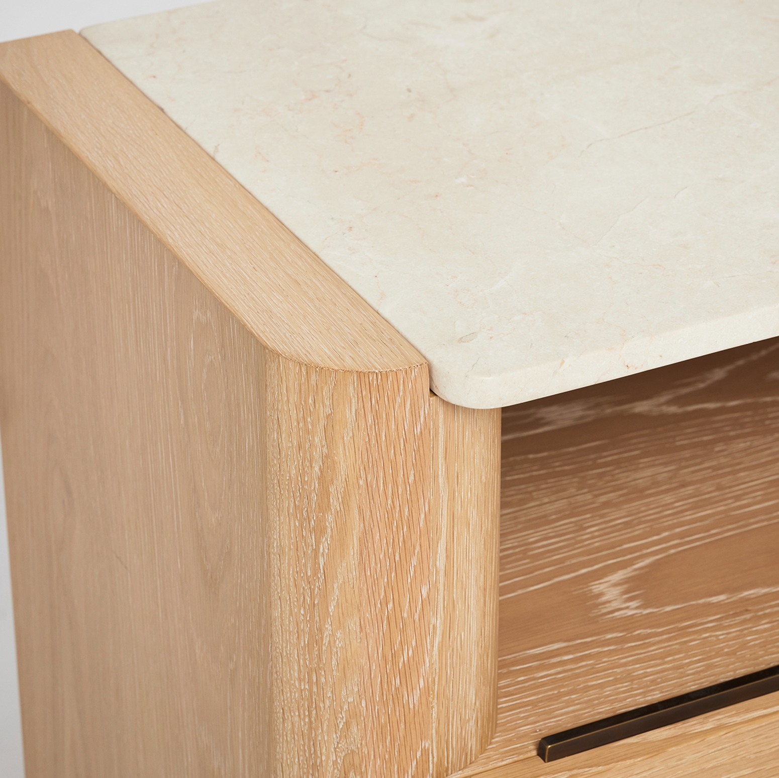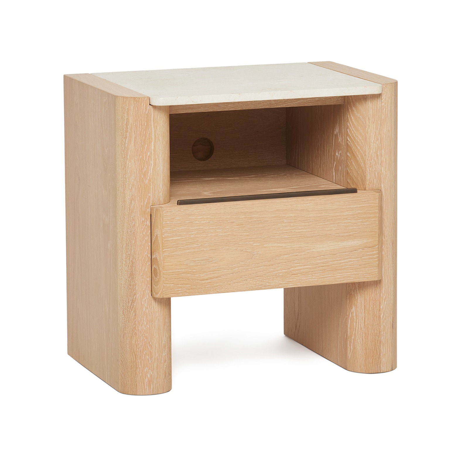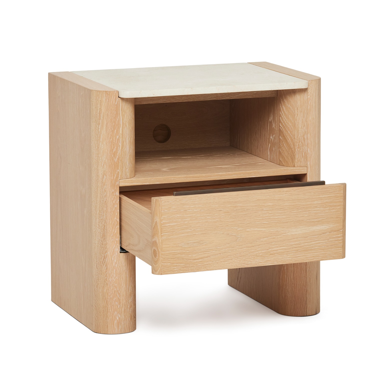 Substantial yet airy, versatile yet luxe, the Arden Bedside Chest is crafted of oak in a saddle finish and topped with honey marble.