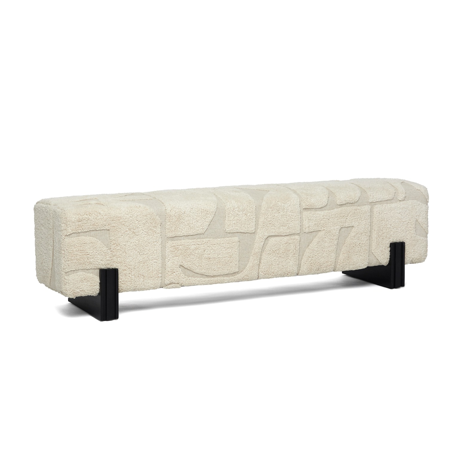 Somehow both warm and sleek, the Connor Grand Bench features bold proportions and the sophisticated pairing of terrain fabric upholstery and a rich, matte black wood frame.