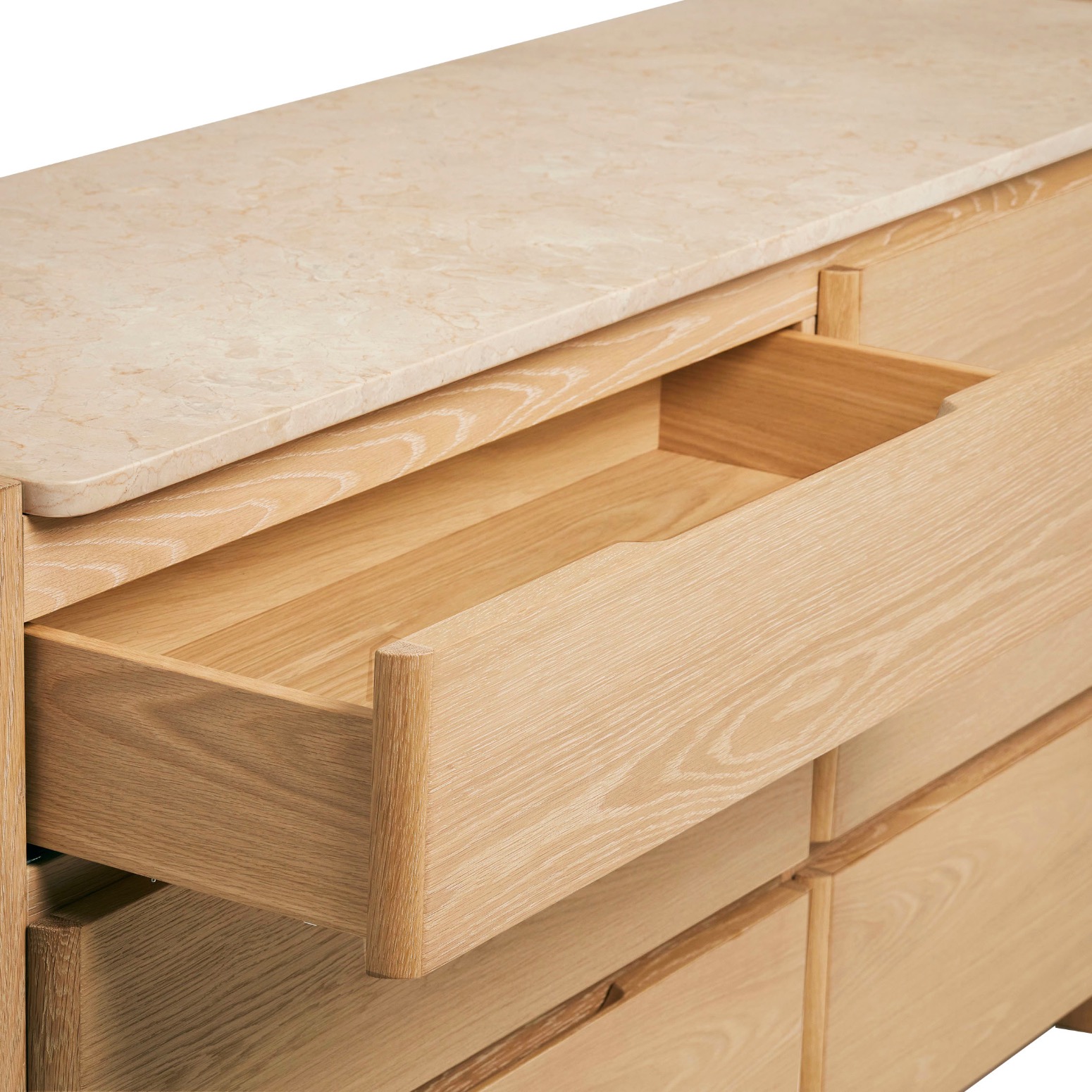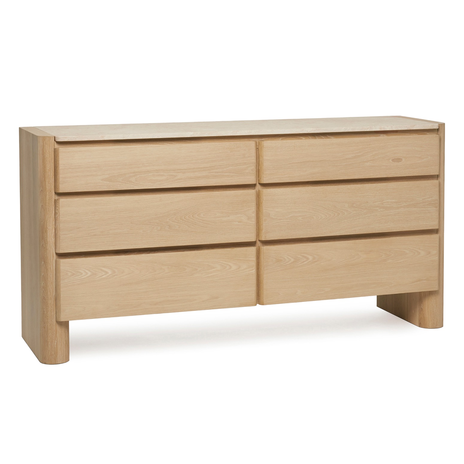 Substantial yet airy, versatile yet luxe, the Arden 6-Drawer Chest is crafted of oak in a saddle finish and topped with honey marble.