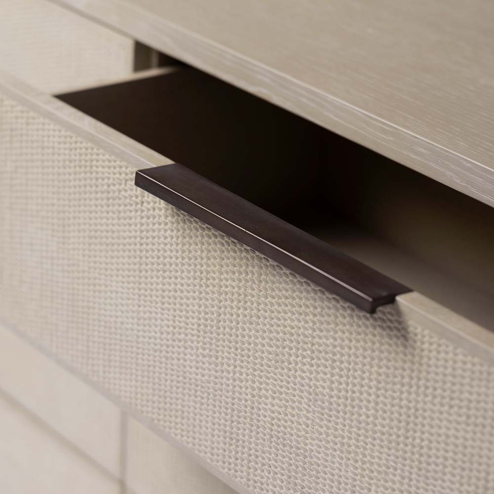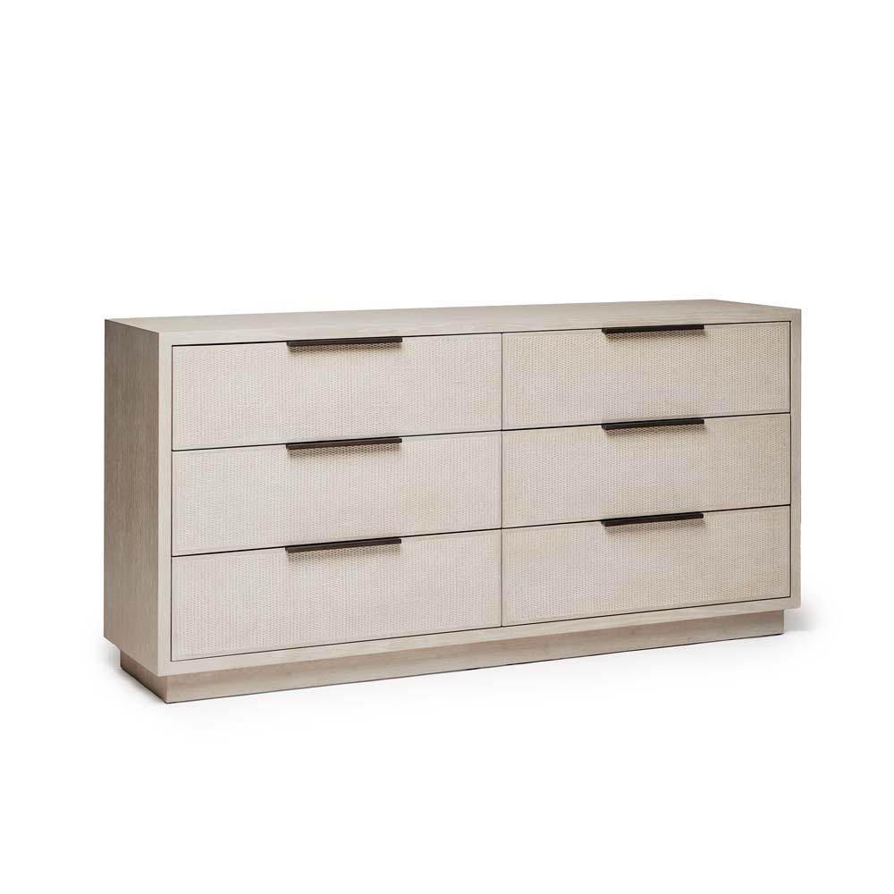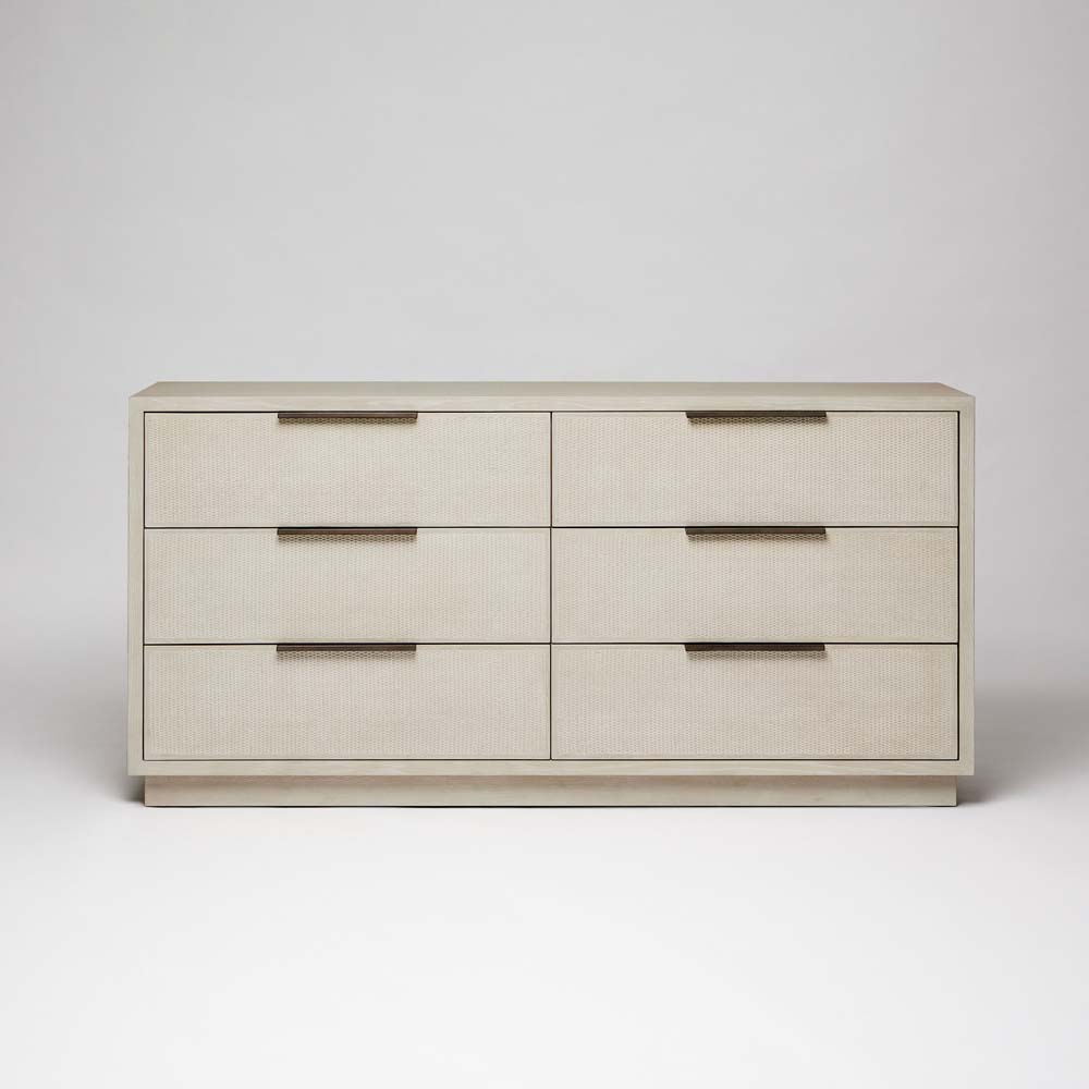 Crafted of oak in a cliffside finish and featuring rattan drawer fronts, the Holmes 6 Drawer Chest delivers organic texture and natural flair.