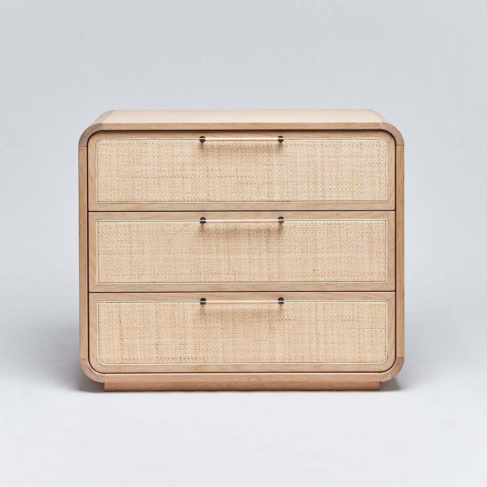 With the pairing of saddle-finished oak and blonde rattan, the Marsh 3 Drawer Chest and its midcentury vibes make for an easy breezy addition.