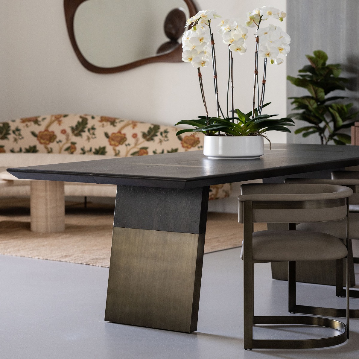 A classic walnut finish brings a bit of gravitas to the teak Audrey Mirror and its playful midcentury profile.