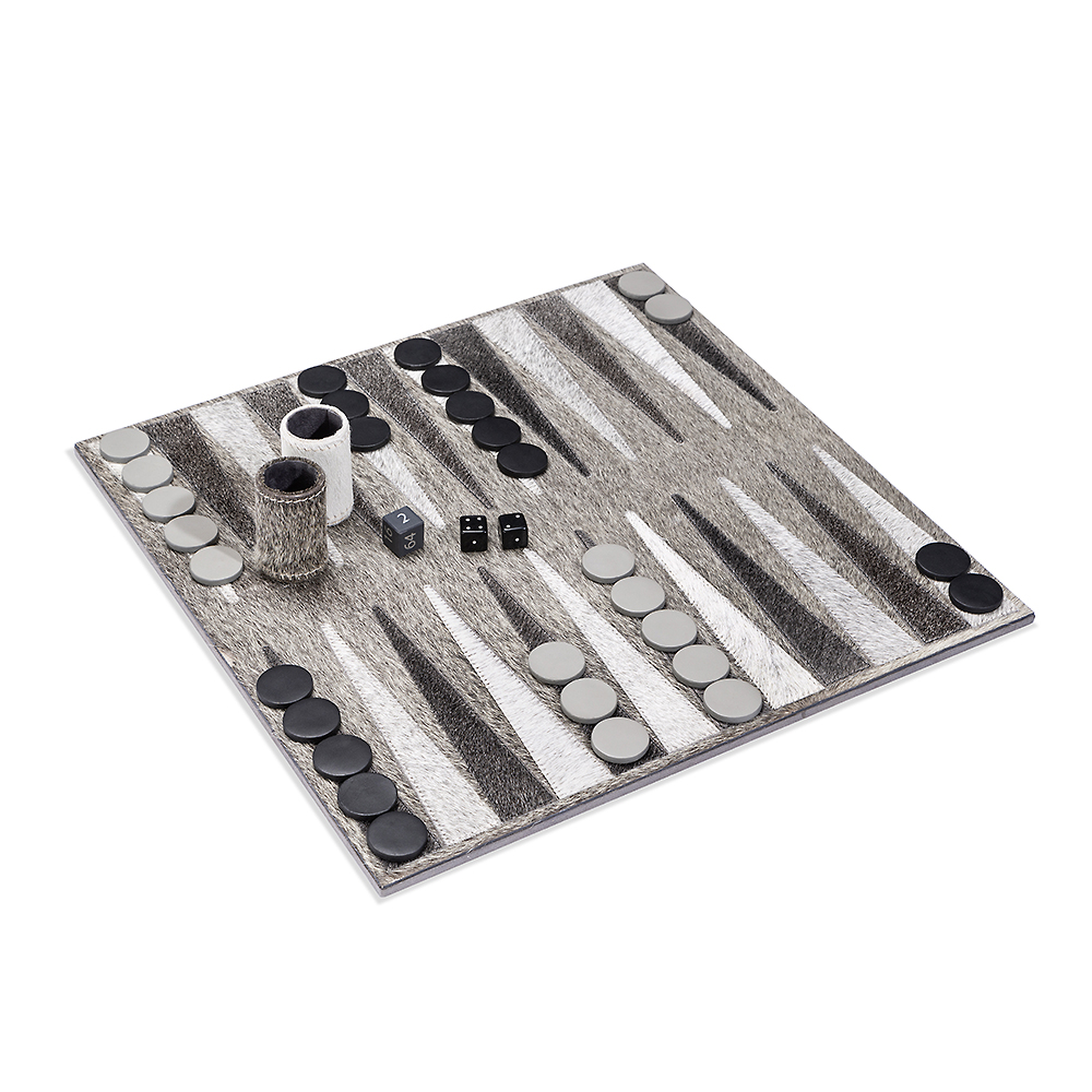 A stylish take on a classic game, the Hampton Backgammon Set is fashioned in shades of natural hide with leather pieces.
