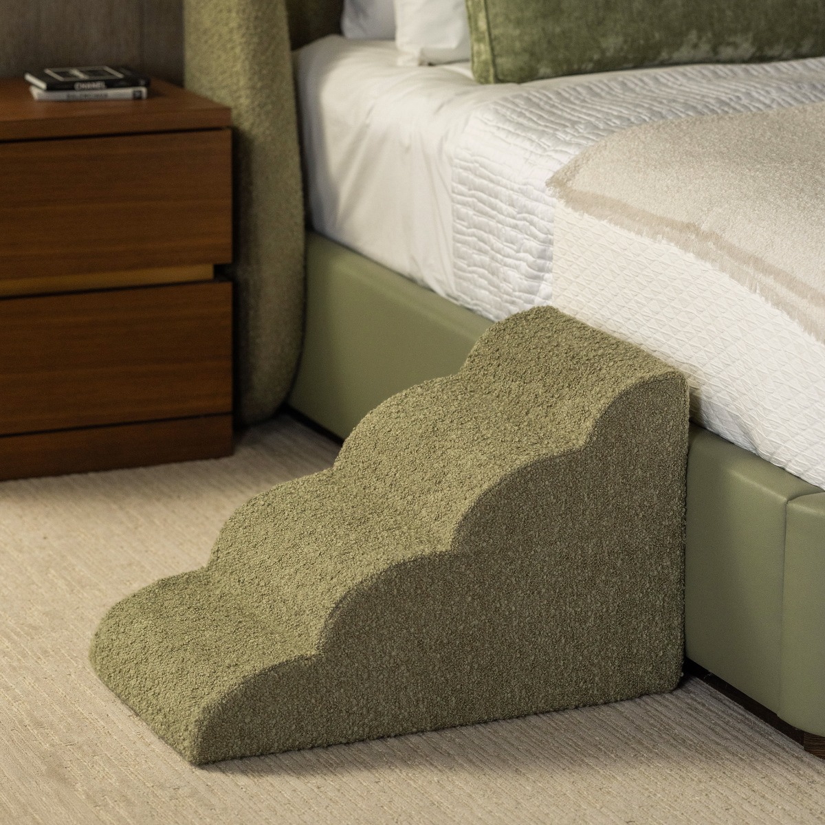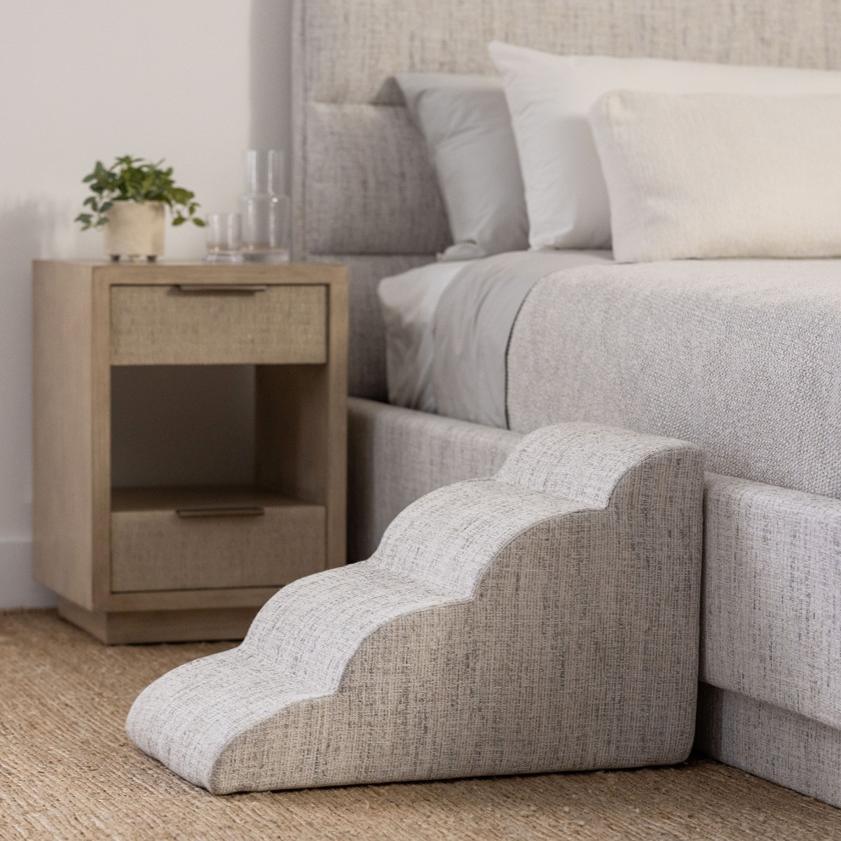 Give your tiny companion a big boost with our custom upholstered pet steps, designed to match your sofa, bed or chair. Our stairs, designed with sturdy, lightweight foam construction are available in 3, 4 or 5 step configurations are handcrafted in your choice of IH fabrics or COM. Treat your pet to safety and confidence—because every little dog deserves access to the big, cozy moments.