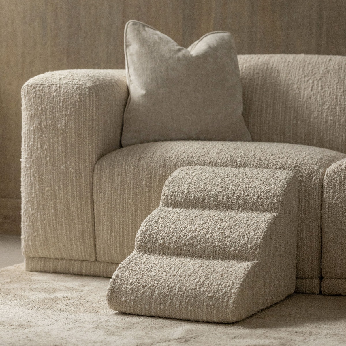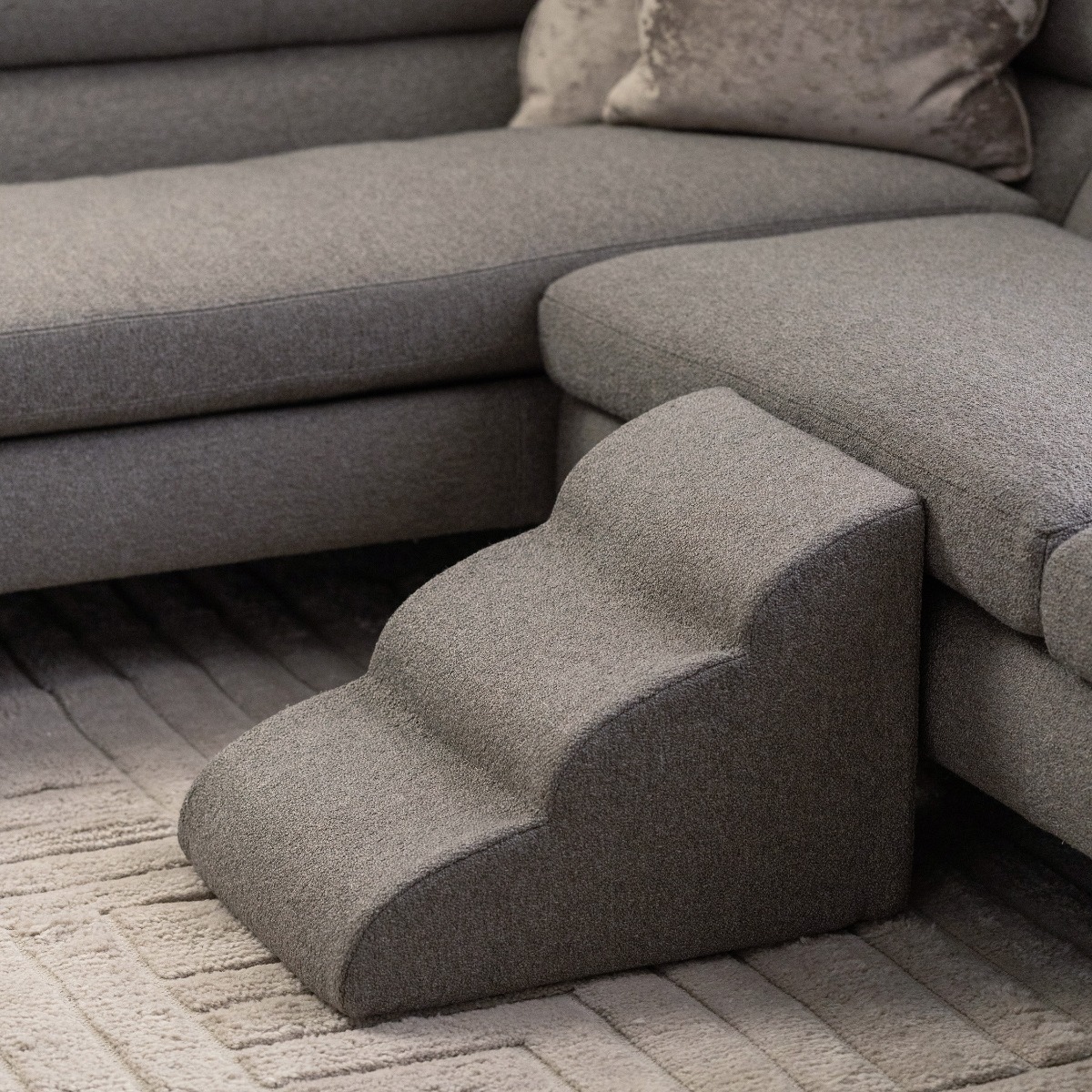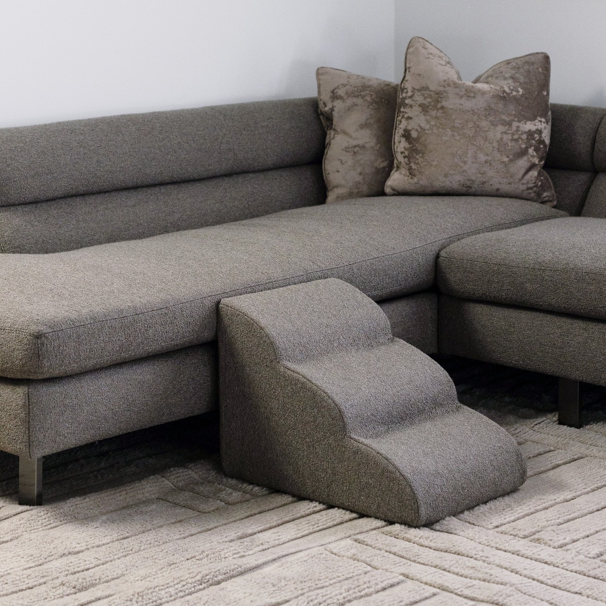 Give your tiny companion a big boost with our custom upholstered pet steps, designed to match your sofa, bed or chair. Our stairs, designed with sturdy, lightweight foam construction are available in 3, 4 or 5 step configurations are handcrafted in your choice of IH fabrics or COM. Treat your pet to safety and confidence—because every little dog deserves access to the big, cozy moments.
