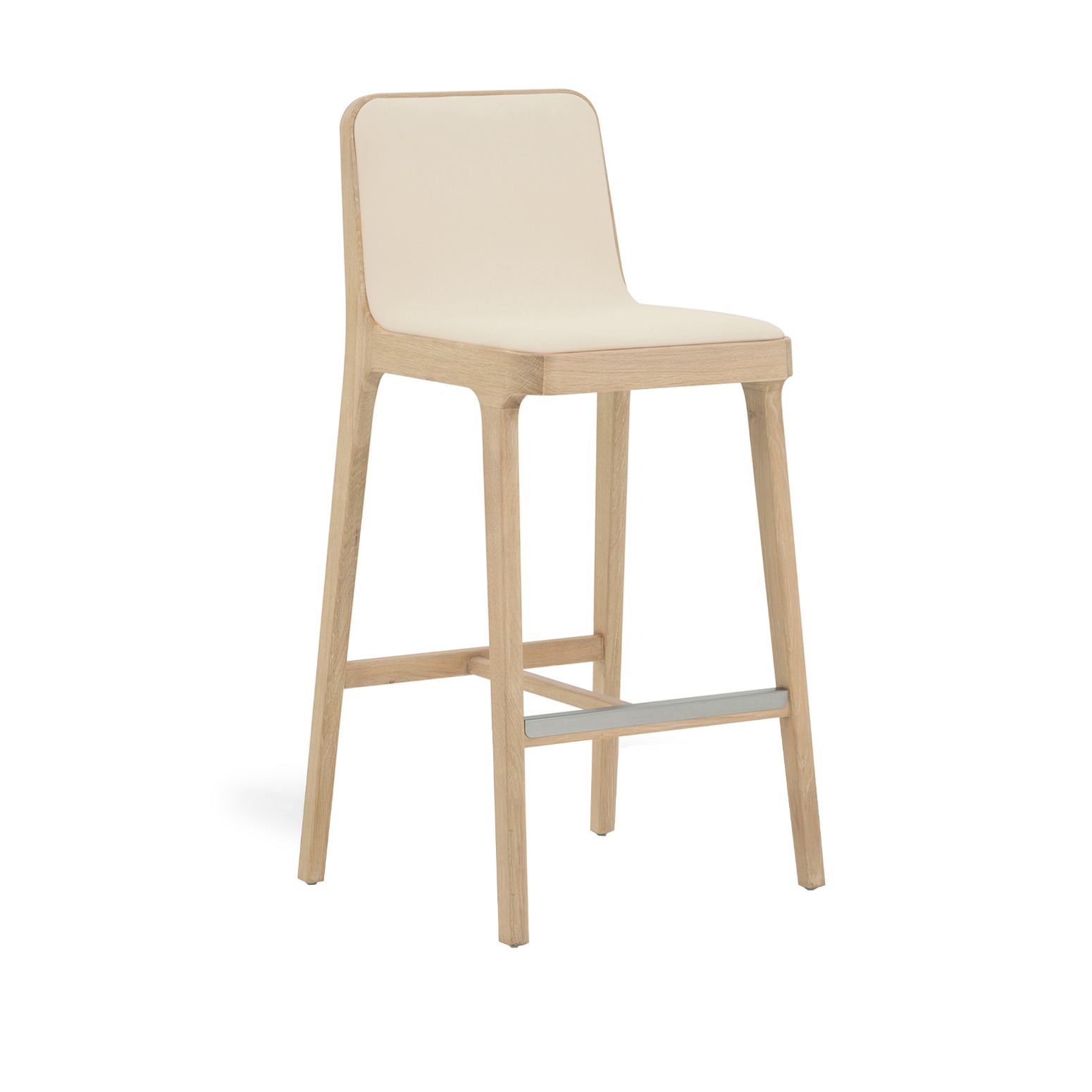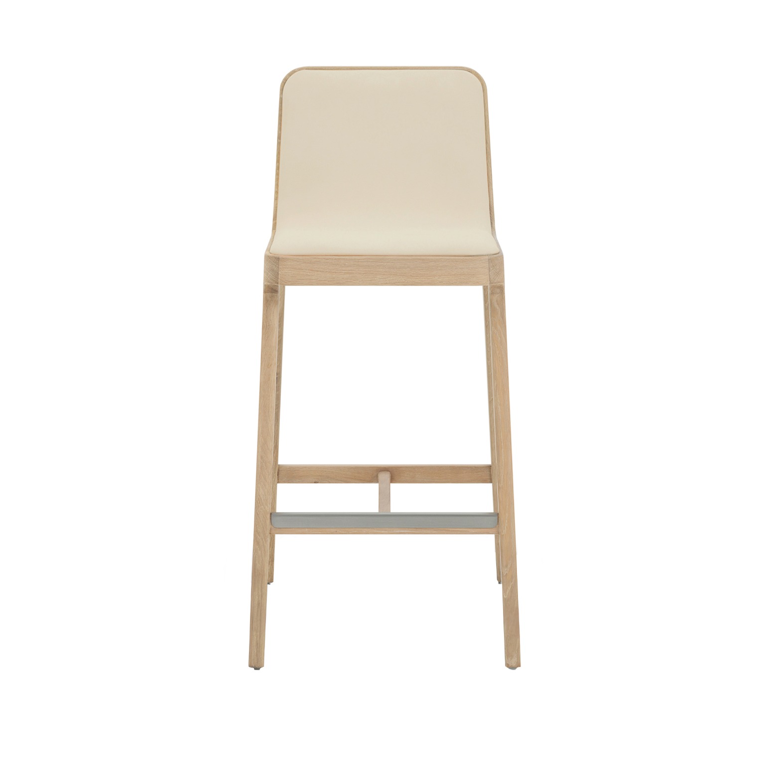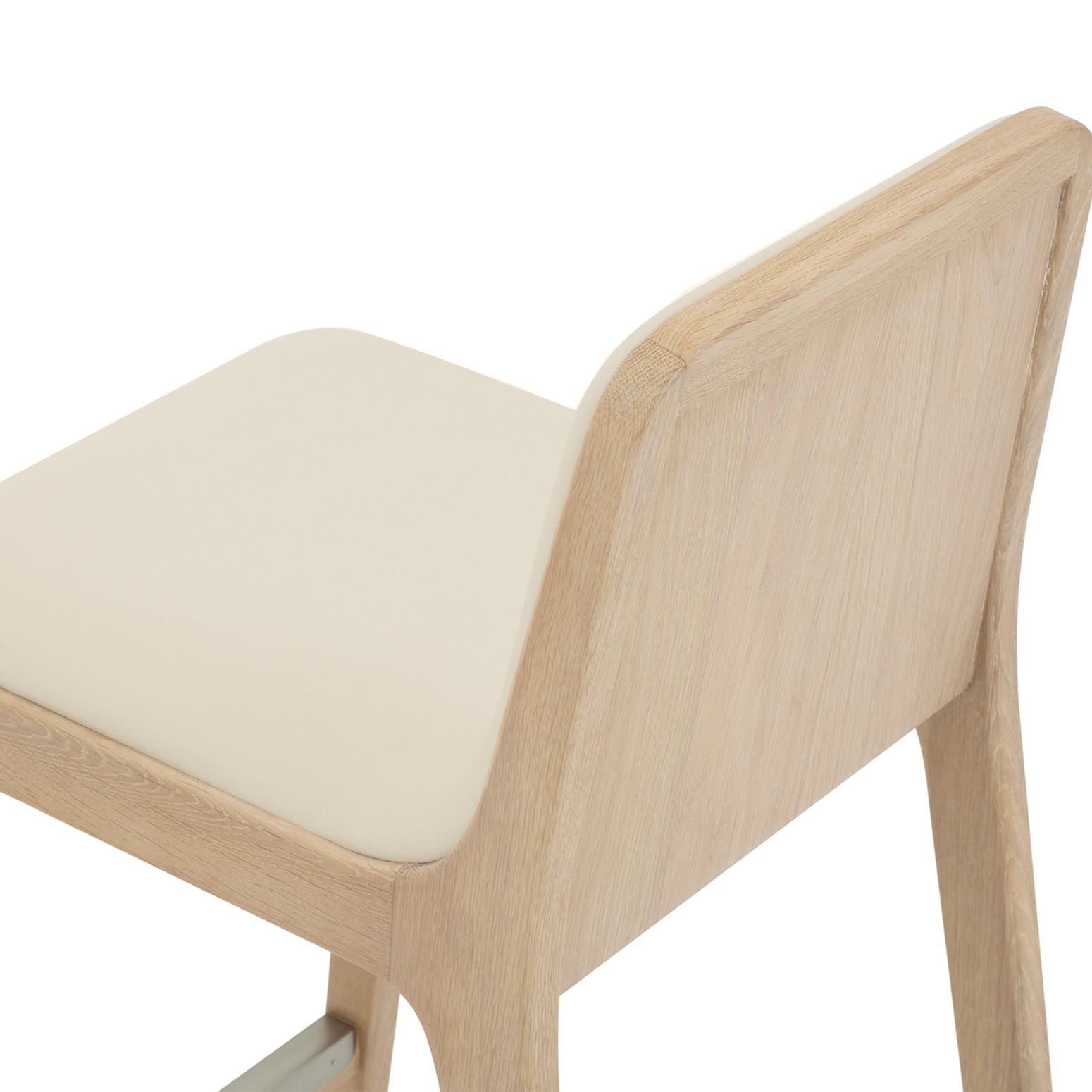 Crafted of oak in a saddle finish with acorn vegan leather and metal foot-rail in a brushed nickel, the Florent Bar Stool is sleek and super chic, but still warm and inviting.
