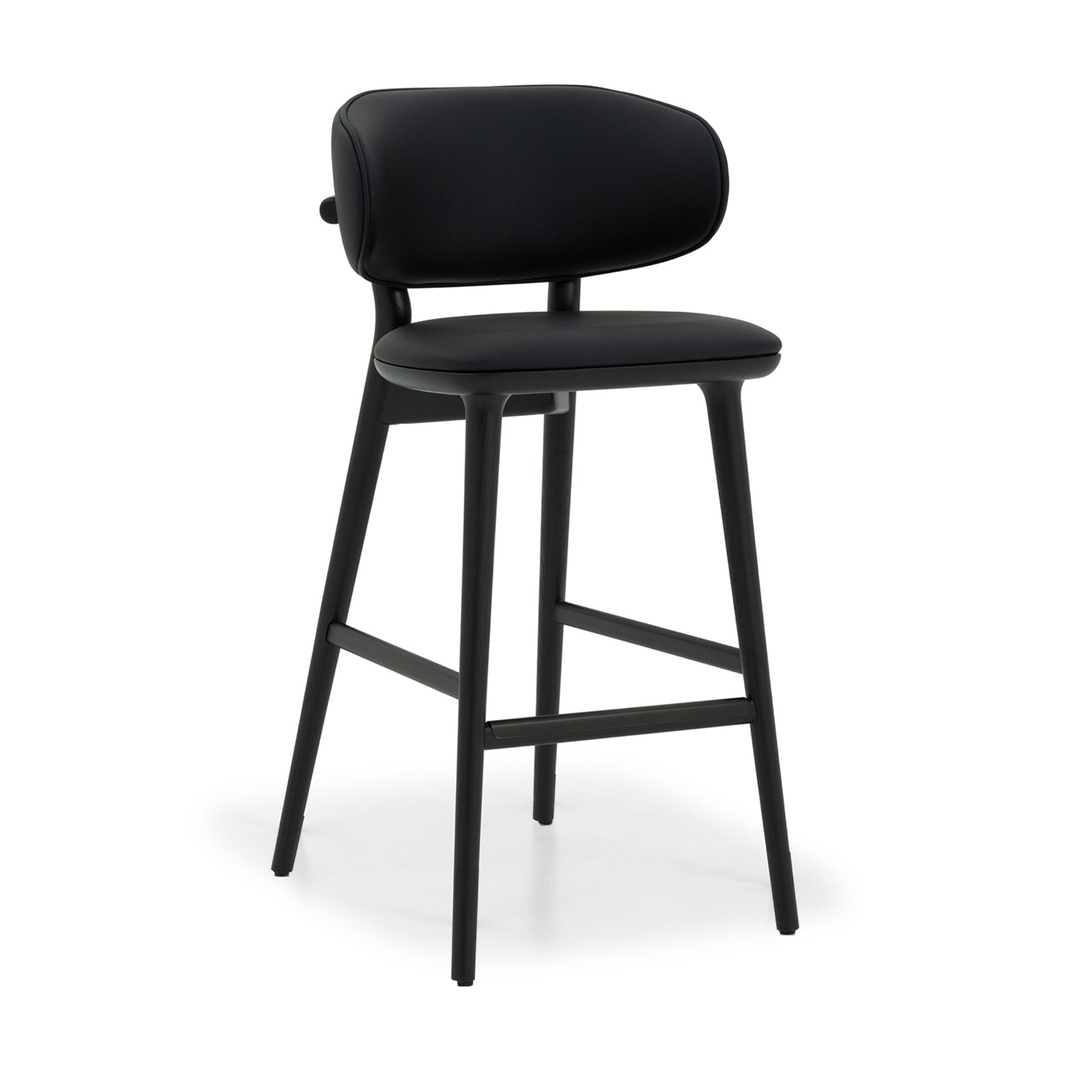 With an oak frame in a matte black finish, upholstery in midnight vegan leather and metal foot-rail in a dark bronze, the Soren Bar Stool boasts versatile, sublime midcentury vibes that pair with any style.