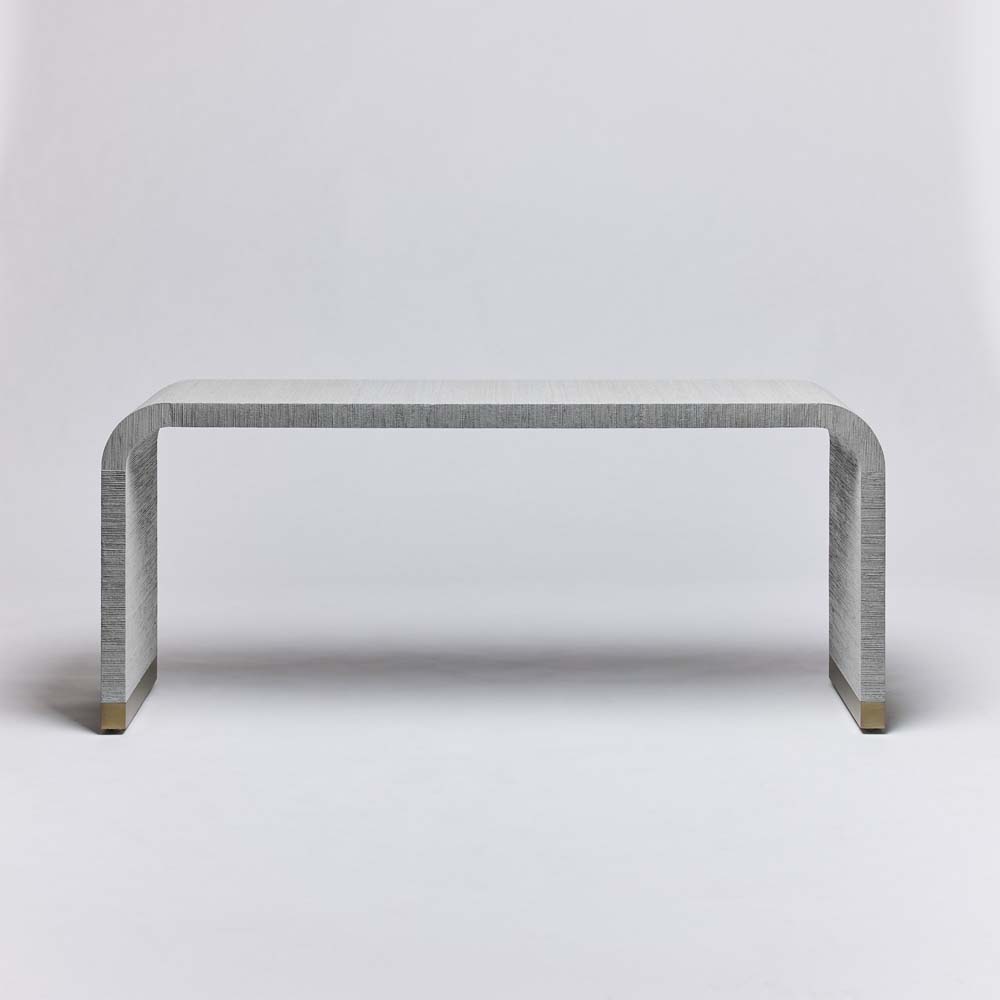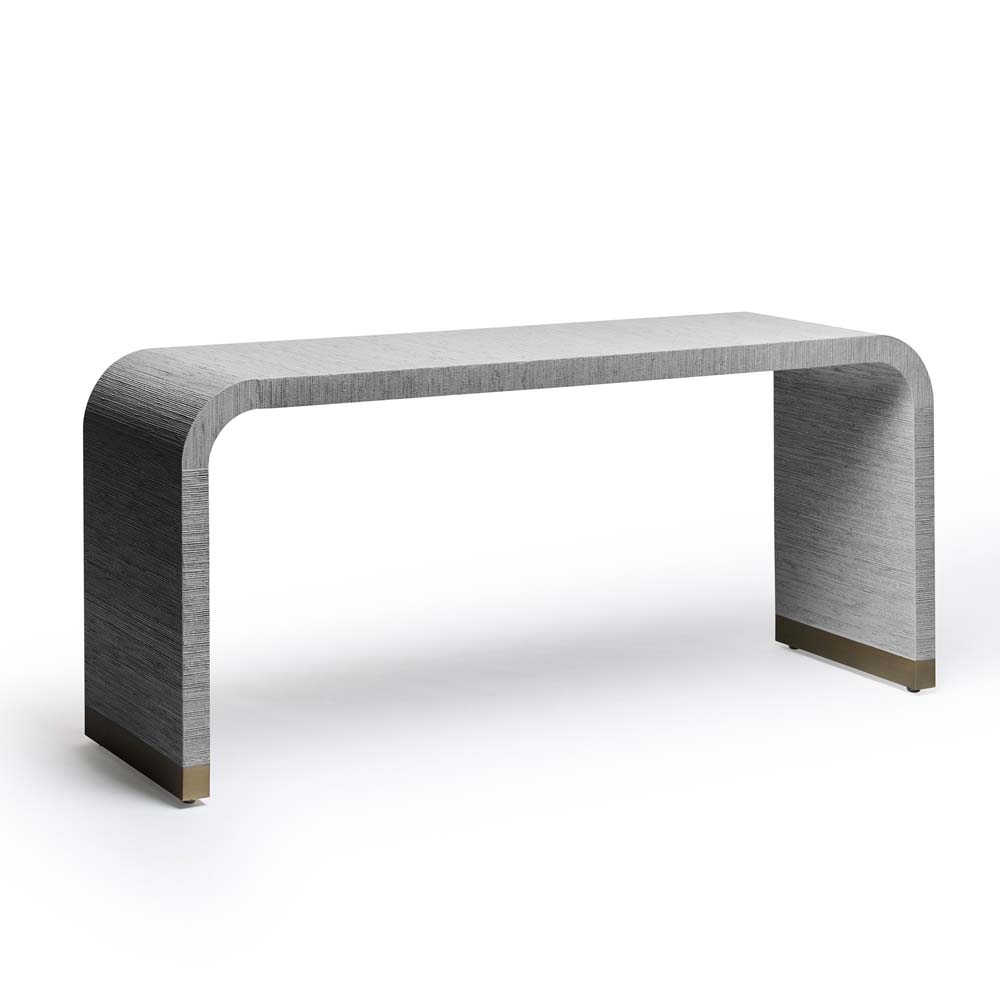 Undeniably high style, the Sutherland Console Table features the organic texture of mist sisal highlighted by iron fittings in champagne silver.