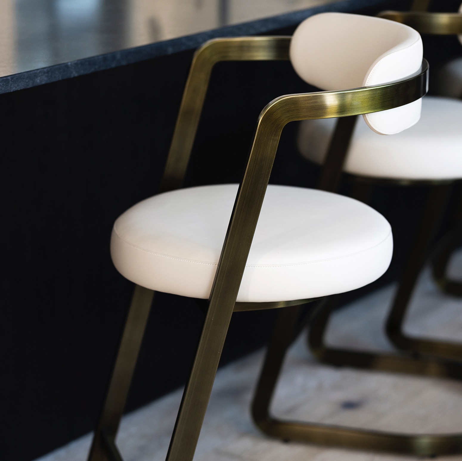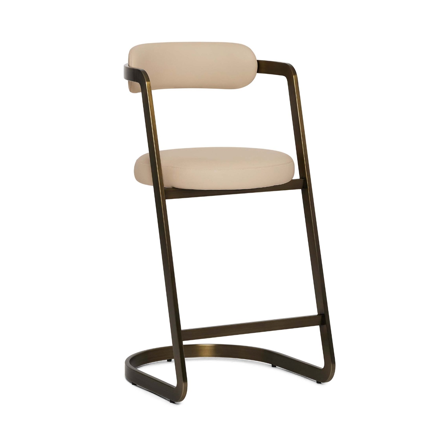 Crafted of stainless steel in an antique bronze finish and featuring cream latte vegan leather upholstery, the Baldwin Counter Stool couldn''t be chicer thanks to its cantilevered profile.