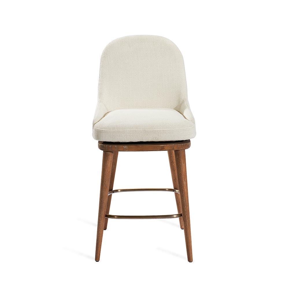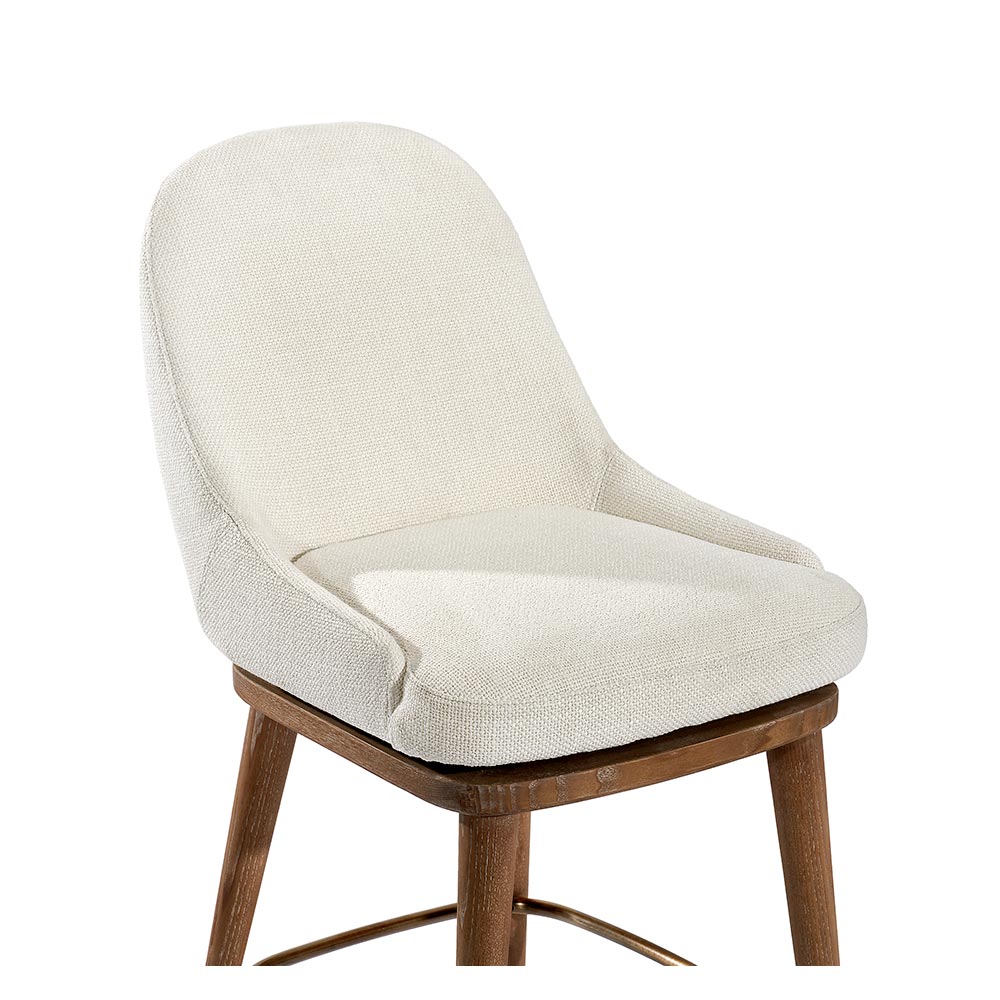 At once sophisticated and playful, the Harper Swivel Counter Stool boasts an autumn brown wood frame and metal footrest in an antique bronze finish paired with an oyster loomed linen seat.