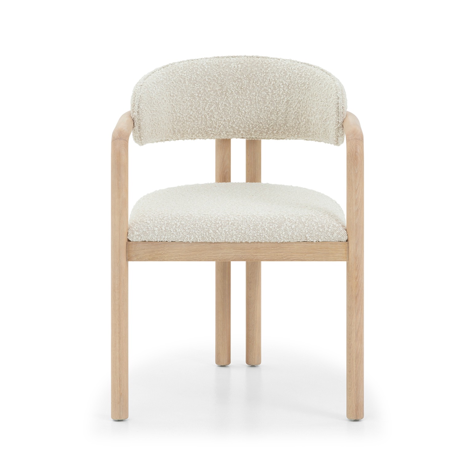 The embodiment of sophisticated simplicity, the Fowler Dining Chair features an oak frame in a saddle finish topped with Mystic Hemp upholstery.