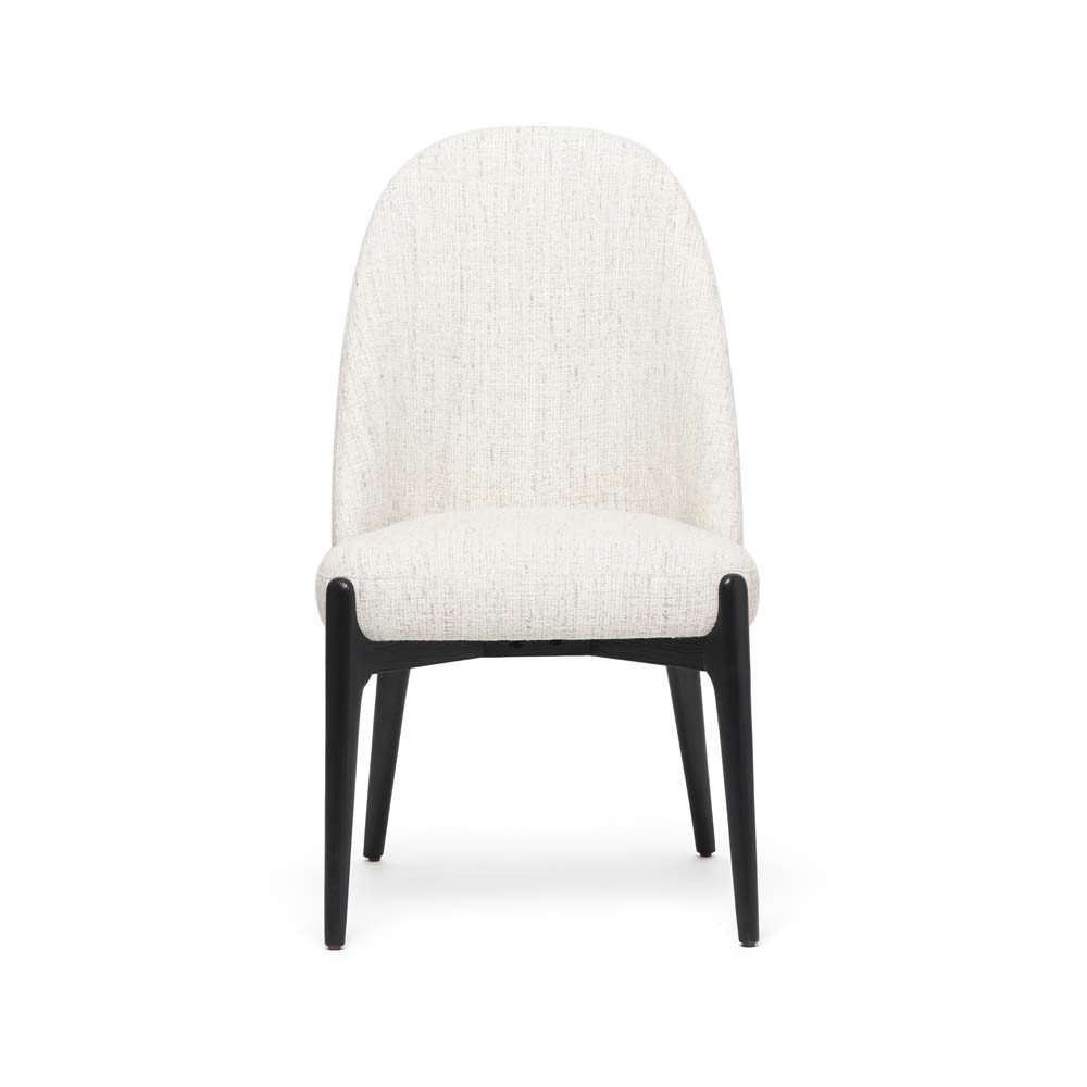 Featuring an ash frame in Matte Black and Beach Heather Belgian loom upholstery, the Oakley Dining Chair is both deceptively discreet and obviously chic.