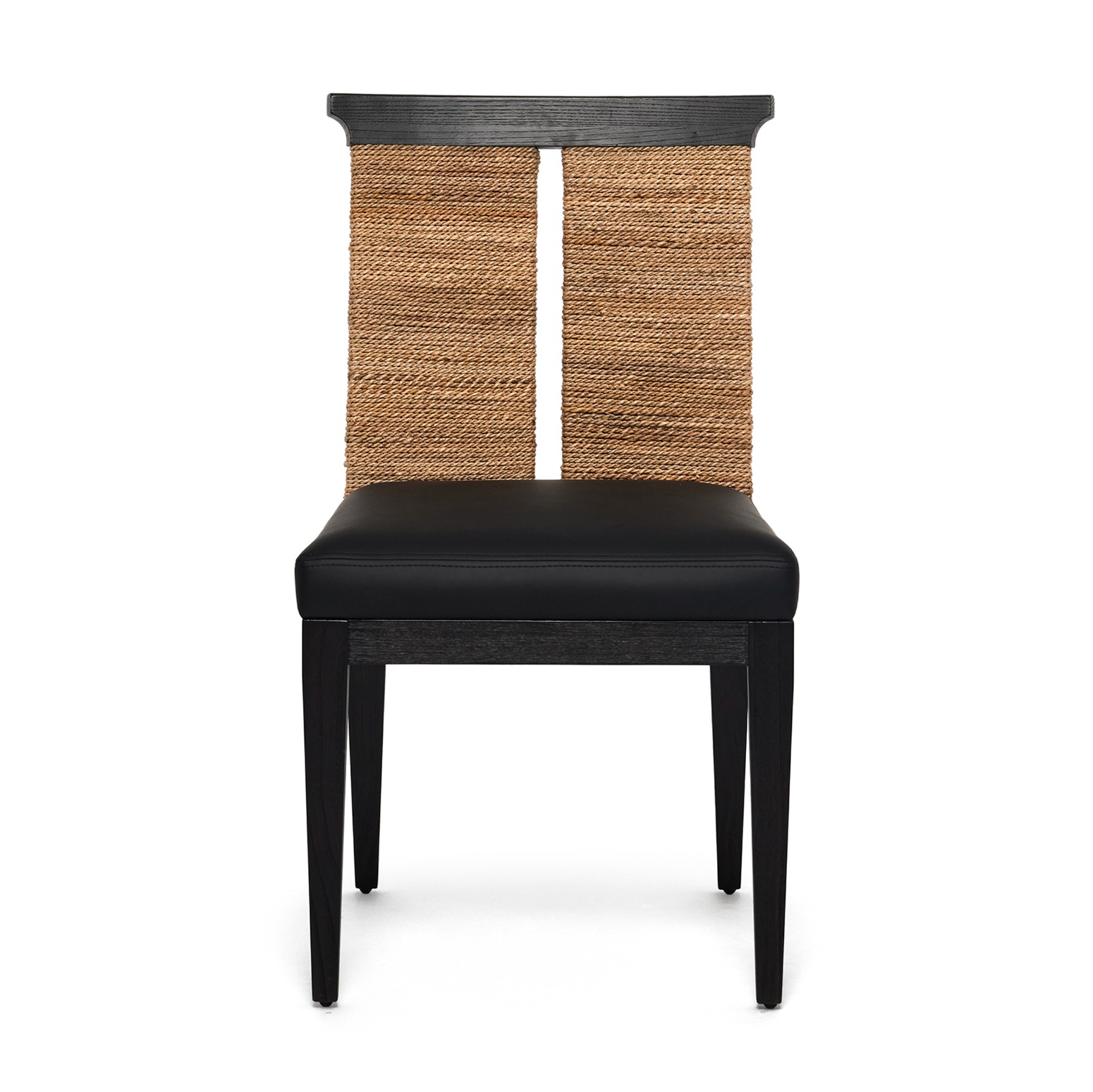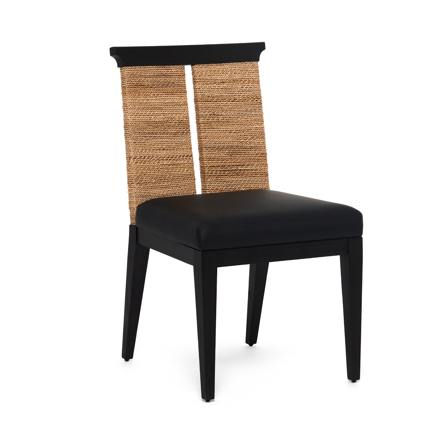 A pitch-perfect marriage of the organic and the man-made, the Reed Dining Chair features a matte black Sungkai wood frame, a vegan leather seat in midnight and a natural banana leaf back.