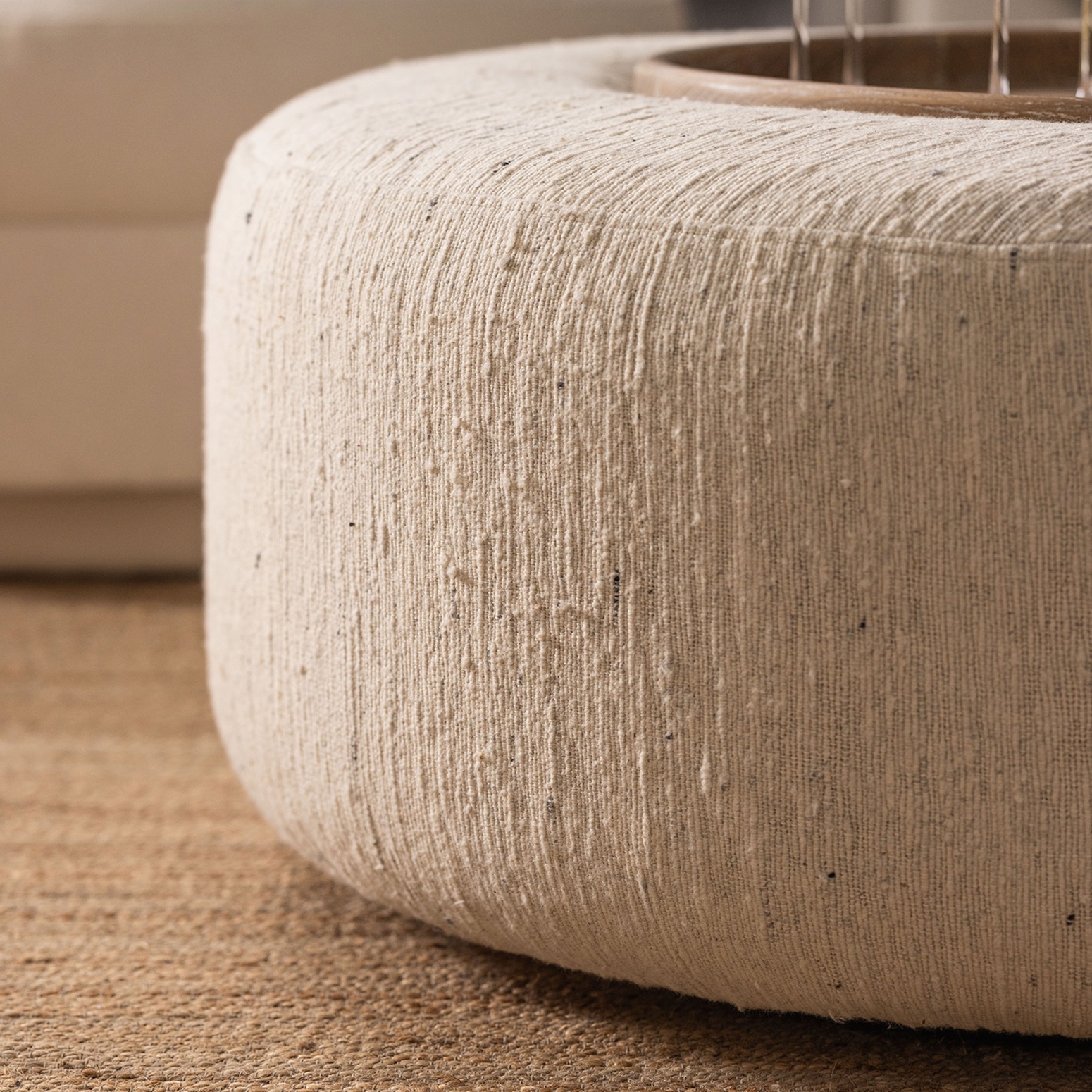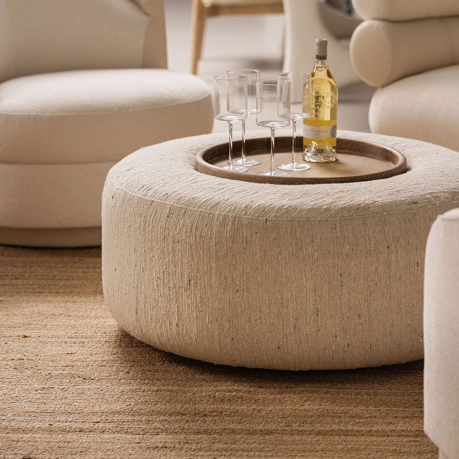 With the neutral pairing of coast fabric and autumn wood, the generously proportioned Amelia Ottoman makes for a chic, versatile perch.