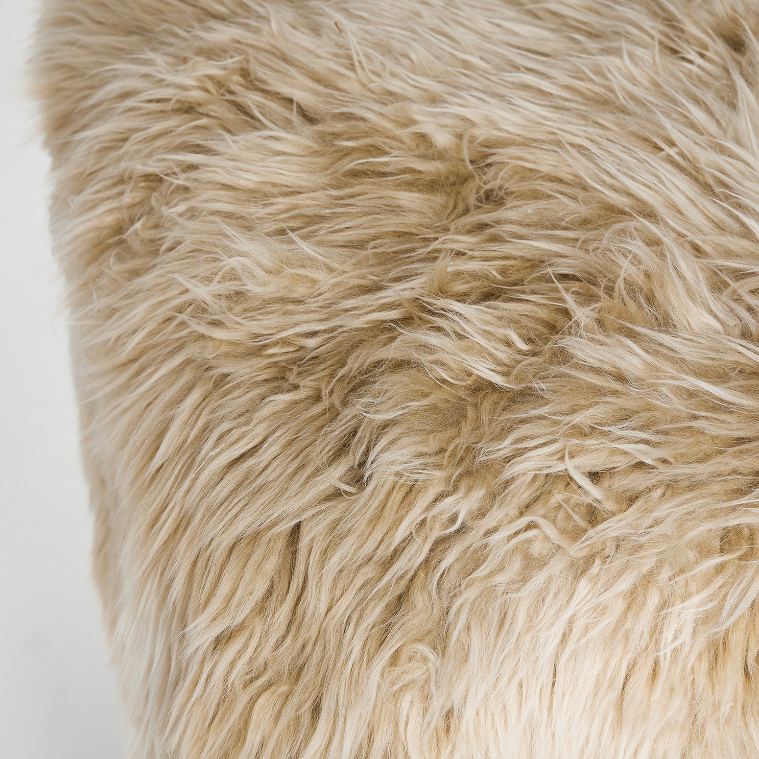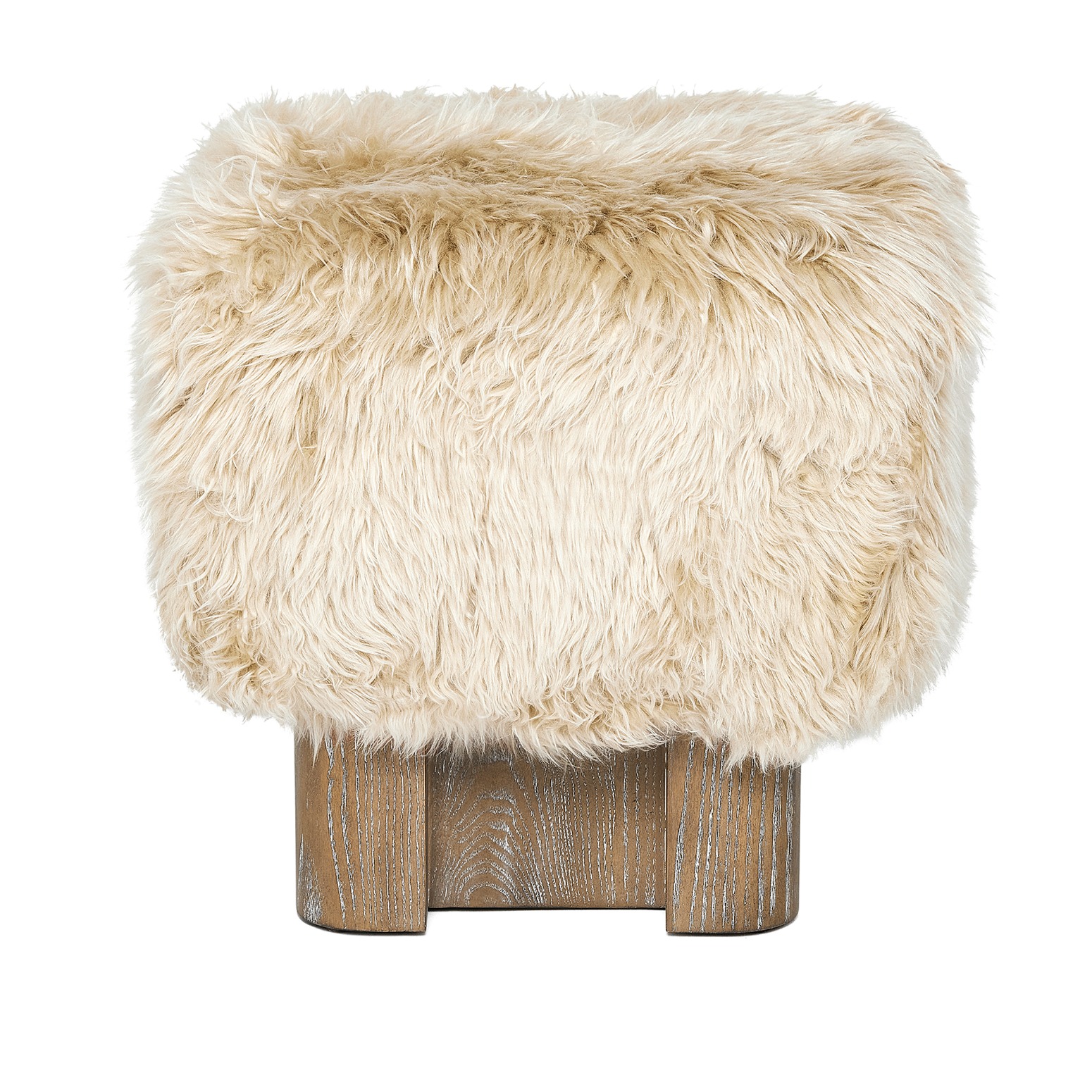The Noah Stool beckons thanks to an abundance of morel taupe Tibetan lambskin topping an ash base in an autumn brown finish.