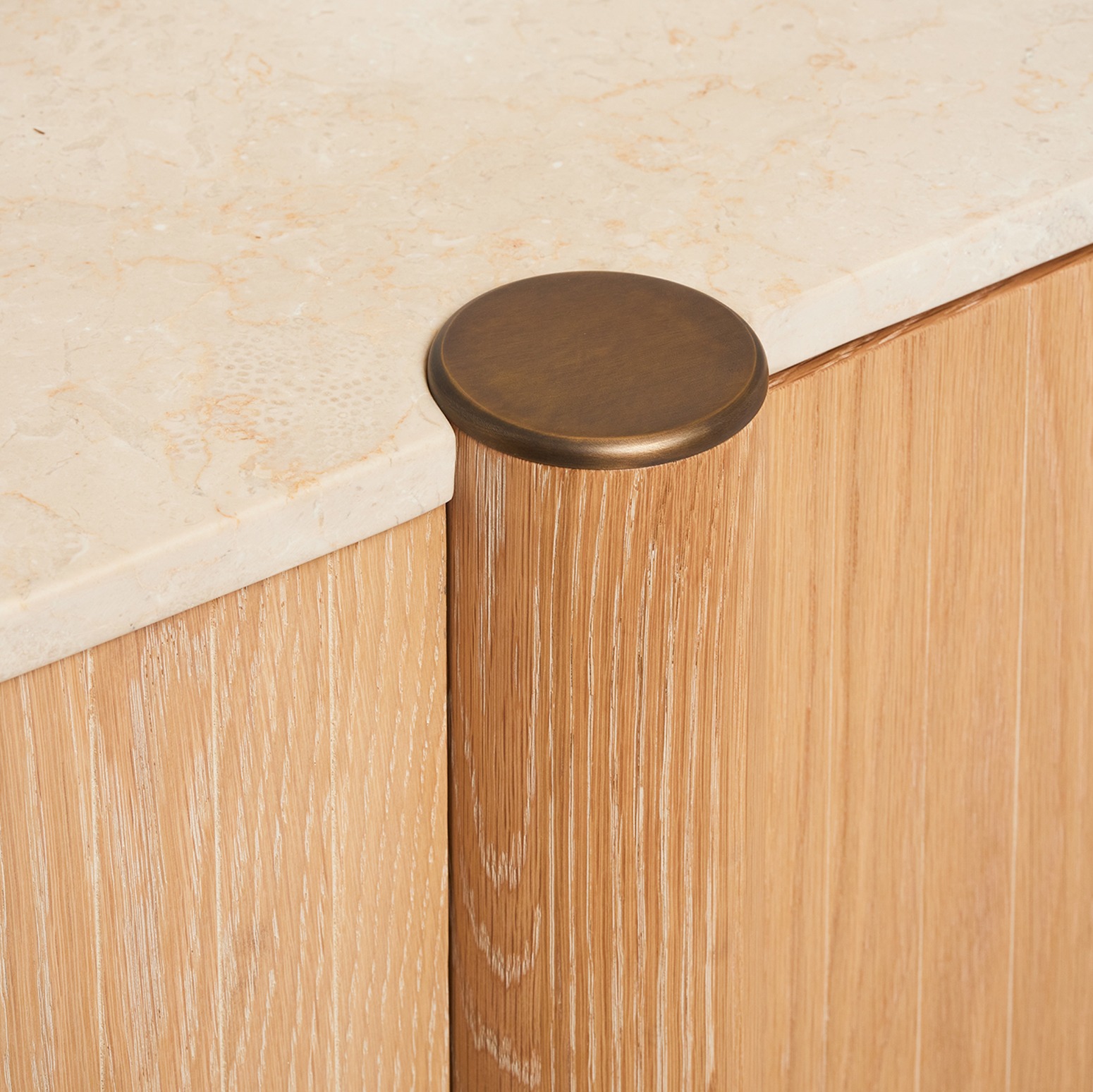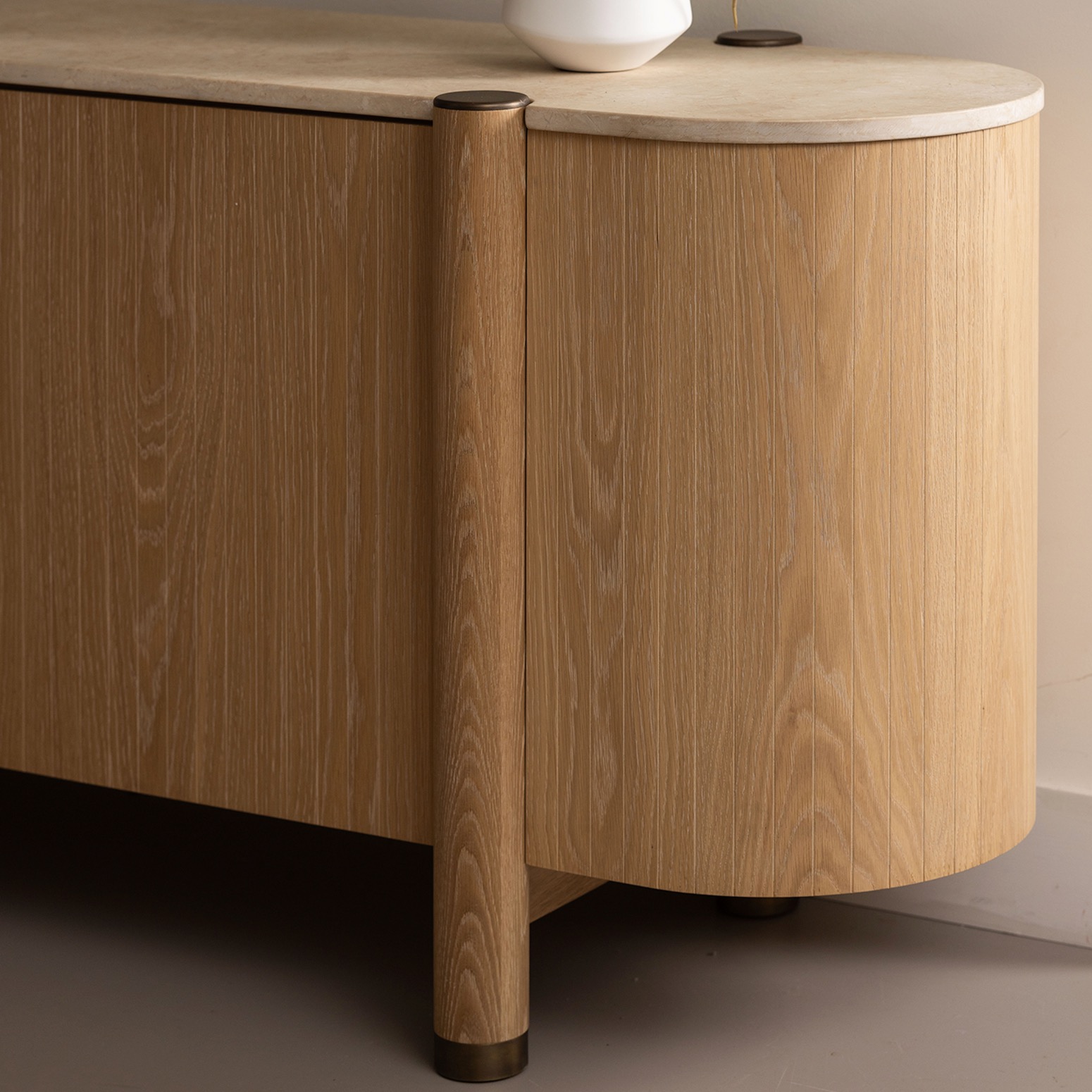 Handsome and boldly sized, the Thorne Credenza claims its place as a showstopper realized in saddle oak and honey marble.