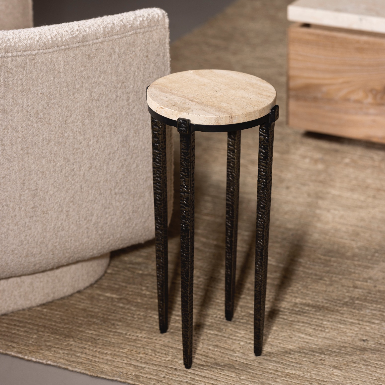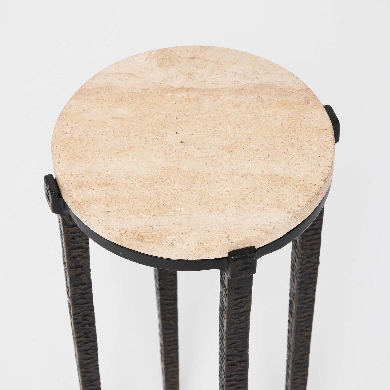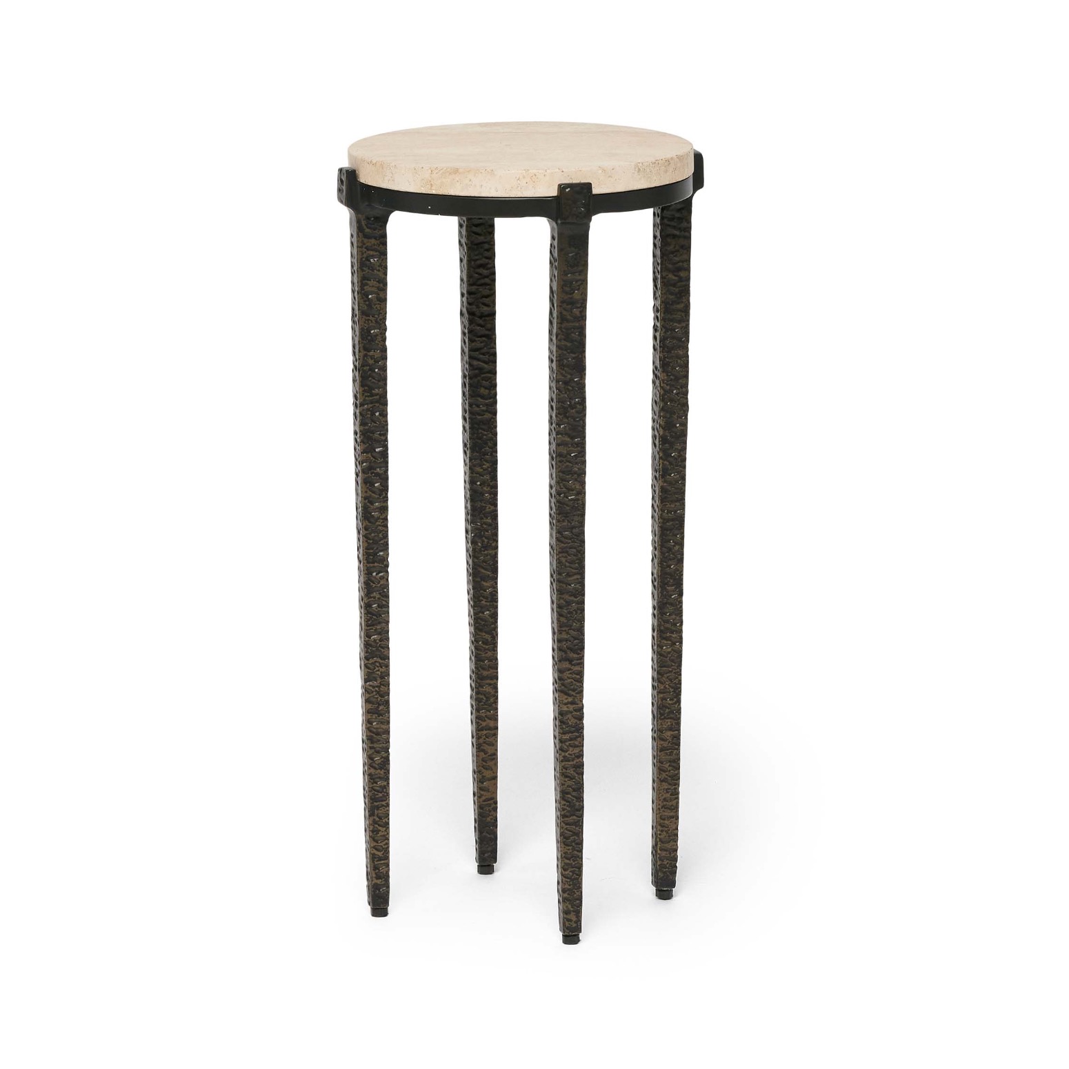 Gilded Bronze and Raw Travertine marble come together to make the Como Drink Table a perfectly versatile accent piece that adapts to any occasion.