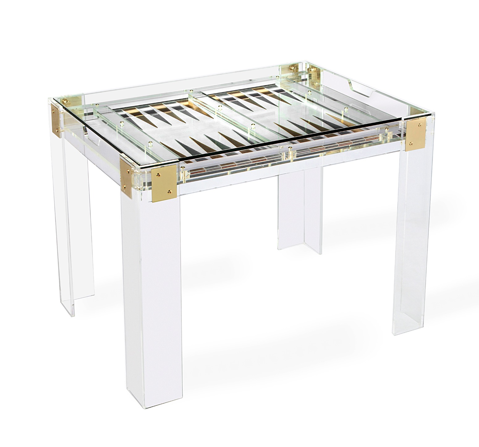 Chic and fabulous, the Pierre Acrylic Backgammon Table evokes the jetsetter at play.