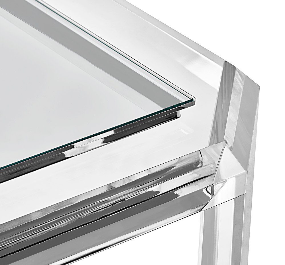 An architectural silhouette transforms the acrylic and glass Alden Table into a fabulous statement-making accent. Endlessly versatile as a small dining table, game table or accent table to activate any space.