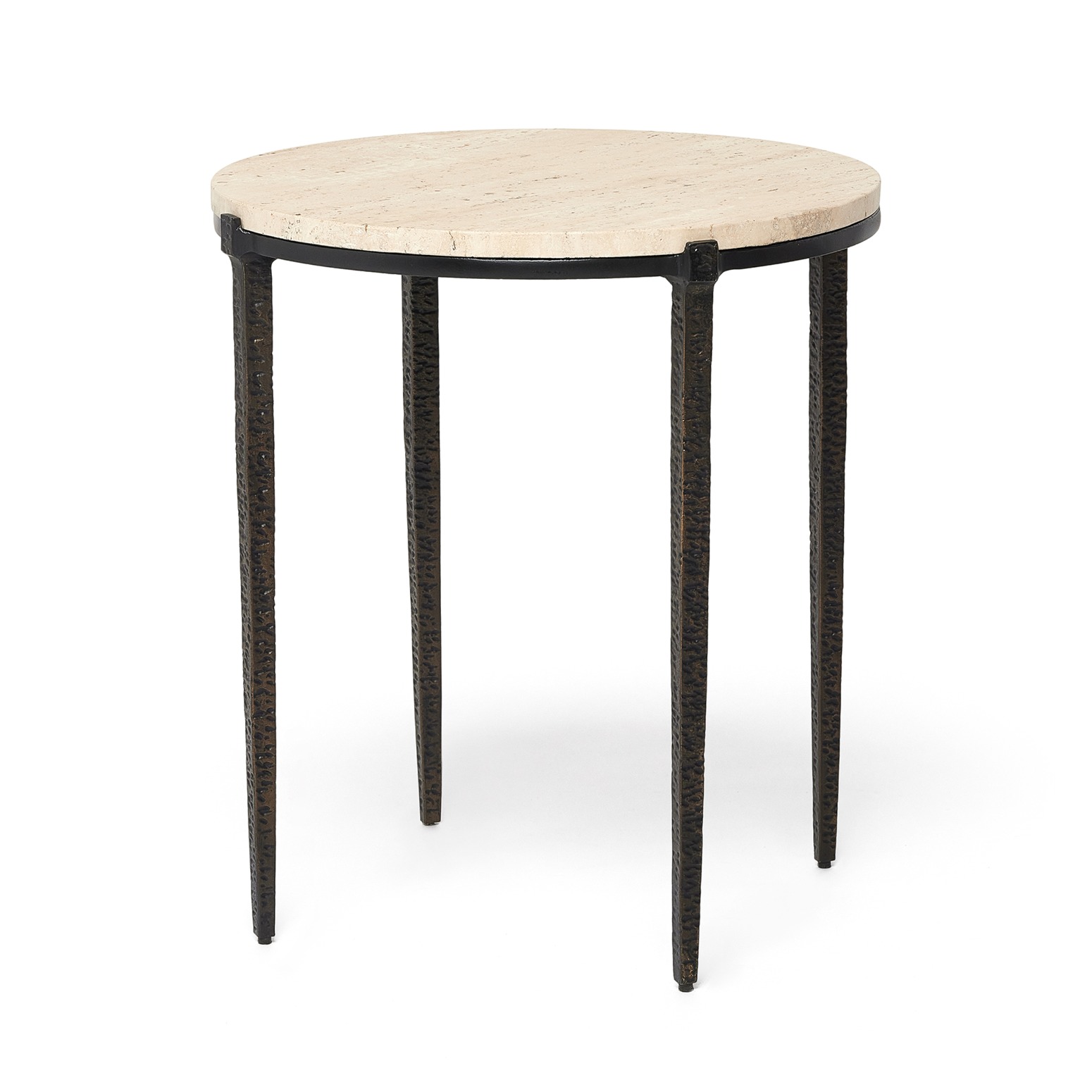 Gilded iron and raw travertine marble come together to make the Como Side Table a perfectly versatile piece that adapts to any occasion.